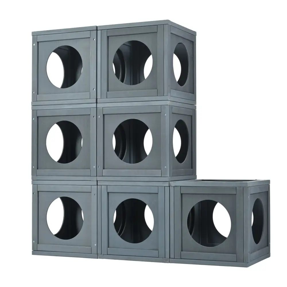Outdoor Cat House With Shelves And Weather Protection, Removable Wood Boxes – Gray