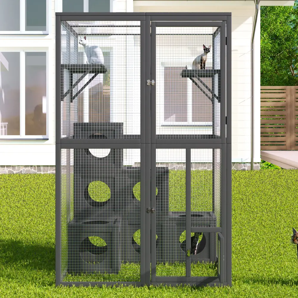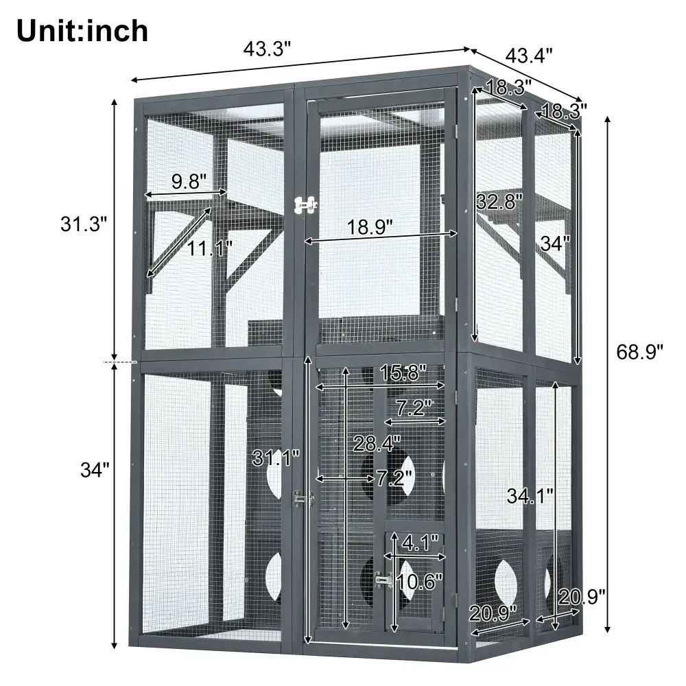 - DESIGN: Large grey cat enclosure with a 69-inch tall door for easy access and interaction.