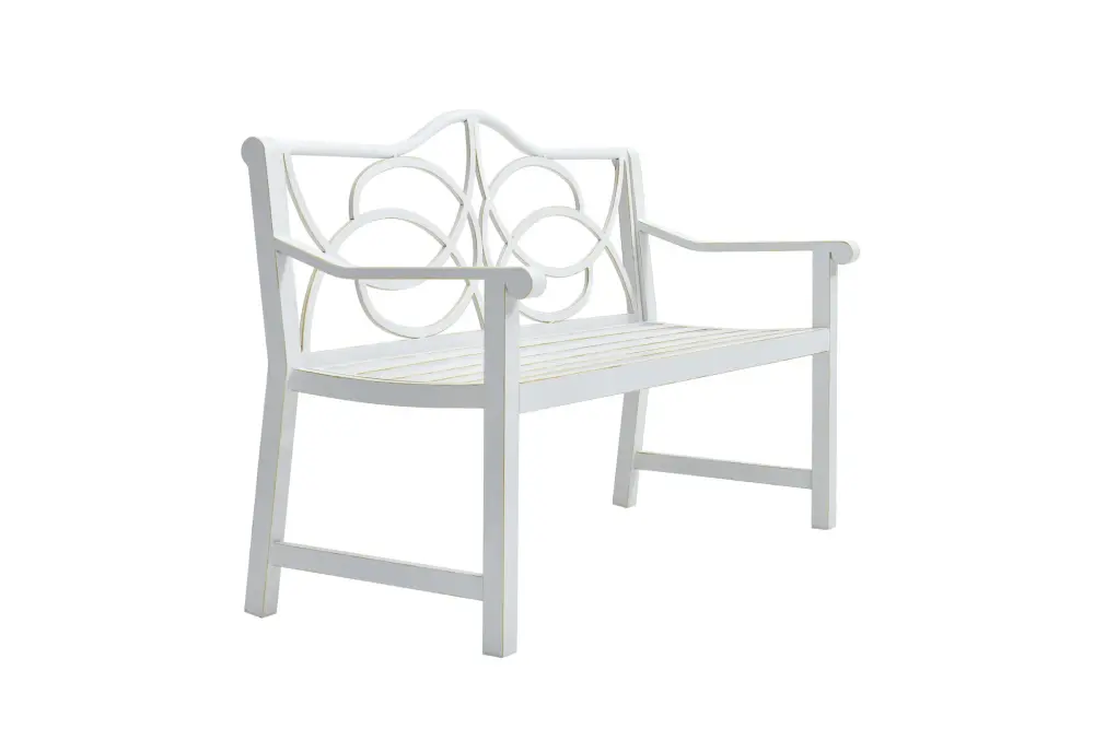 Outdoor Garden Patio Bench With Backrest And Armrest, Slatted Seat For Park, Yard & Porch, Balcony, Accommodates 2 – 3 People – White