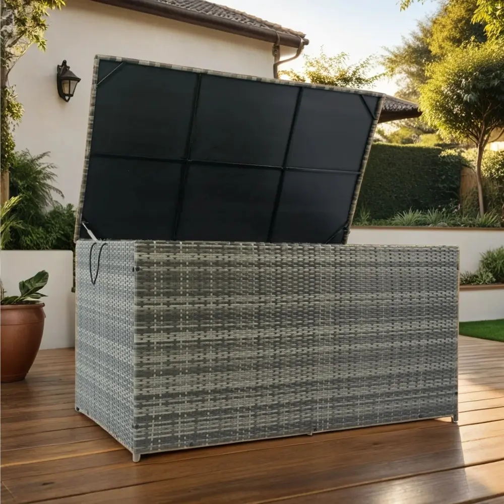 - Portable & Versatile: Lightweight rattan material and all-metal frame make it easy to move and can double as a side table when the lid is closed.