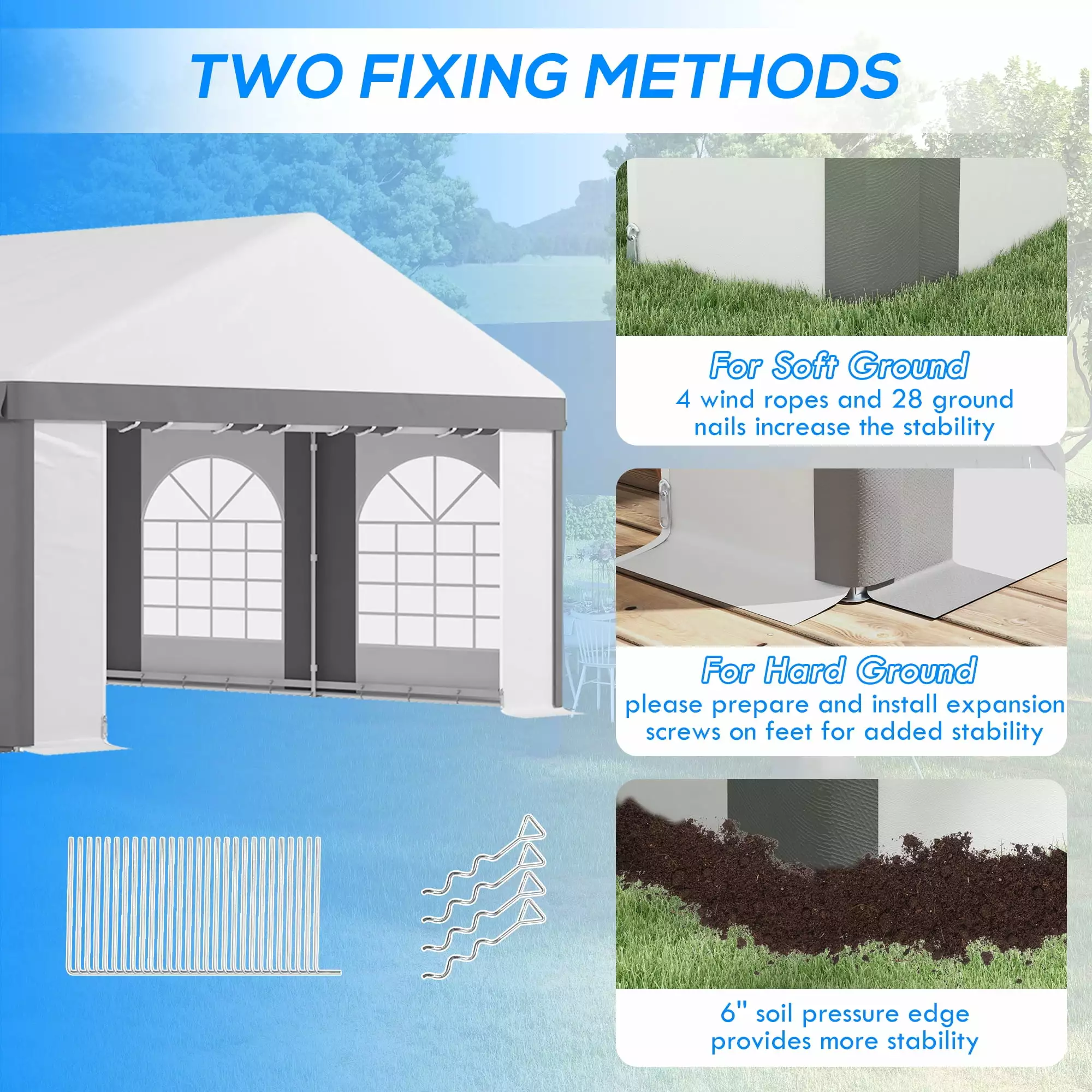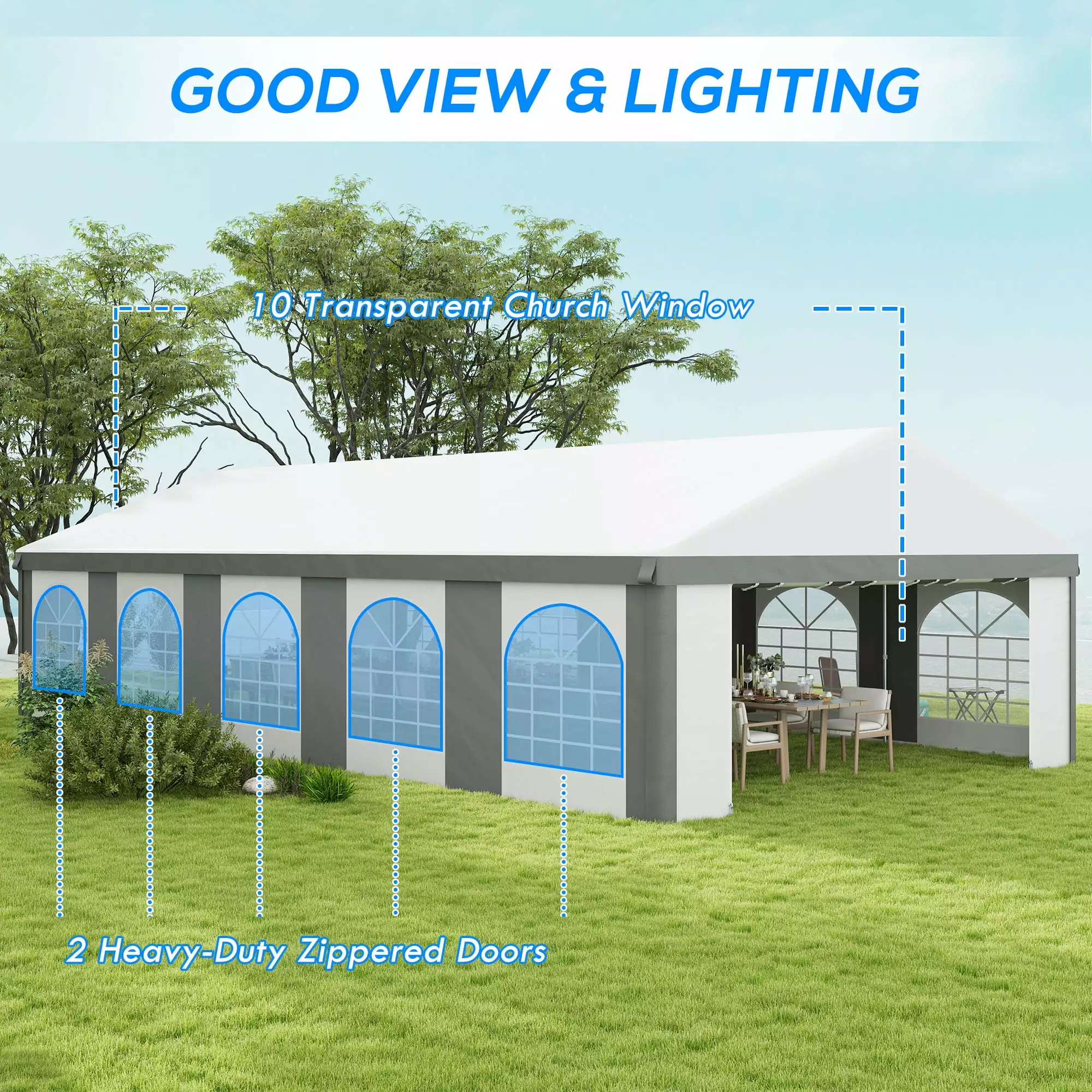 Outsunny’s 16′ x 32′ carport and party tent can protect your project car and transform any outdoor area into a unique event space. Excellent for wedding receptions. graduation parties. or extra-large barbeques. it offers six stylish cathedral-esque windows. Excellent for small-to-medium cars. boats. furniture. and tools. it stops sun damage and sunburns alike. Made of a galvanized steel frame selected to withstand warping. Outsunny’s canopy tent provides portable protection.With Removable Sidewalls