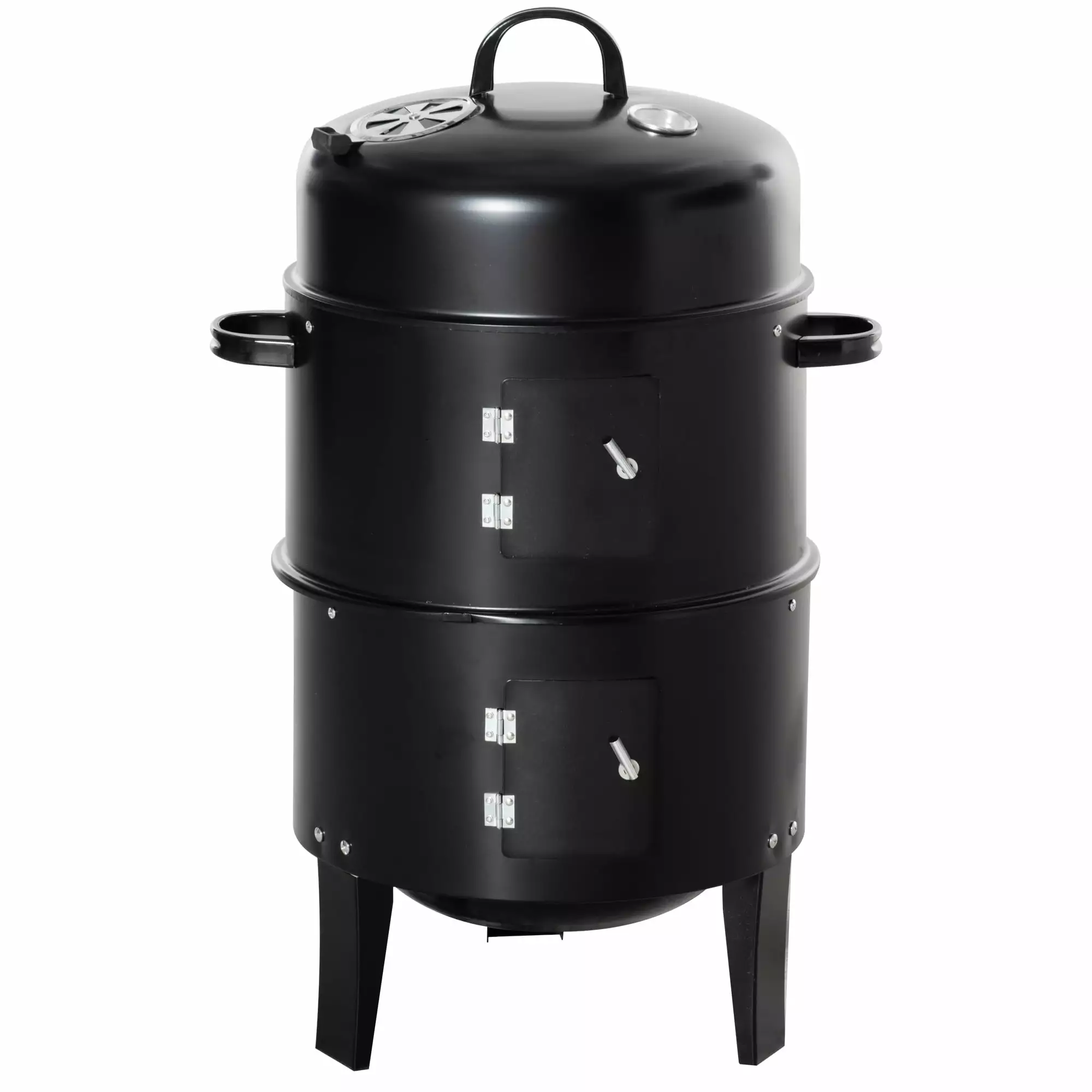Embrace your inner pitmaster with this BBQ grill and smoker from Outsunny. Season up your favorite steaks. chicken ribs. and briskets and slow cook them inside while adding your favorite type of charcoal or wood chips (applewood!). Use both racks for meats or bring in some seasonal vegetables like corn. squash. or peppers to bring the meal together. Get that grill apron out of the garage and make delicious BBQ and dinners on this Outsunny outdoor grill all summer long.