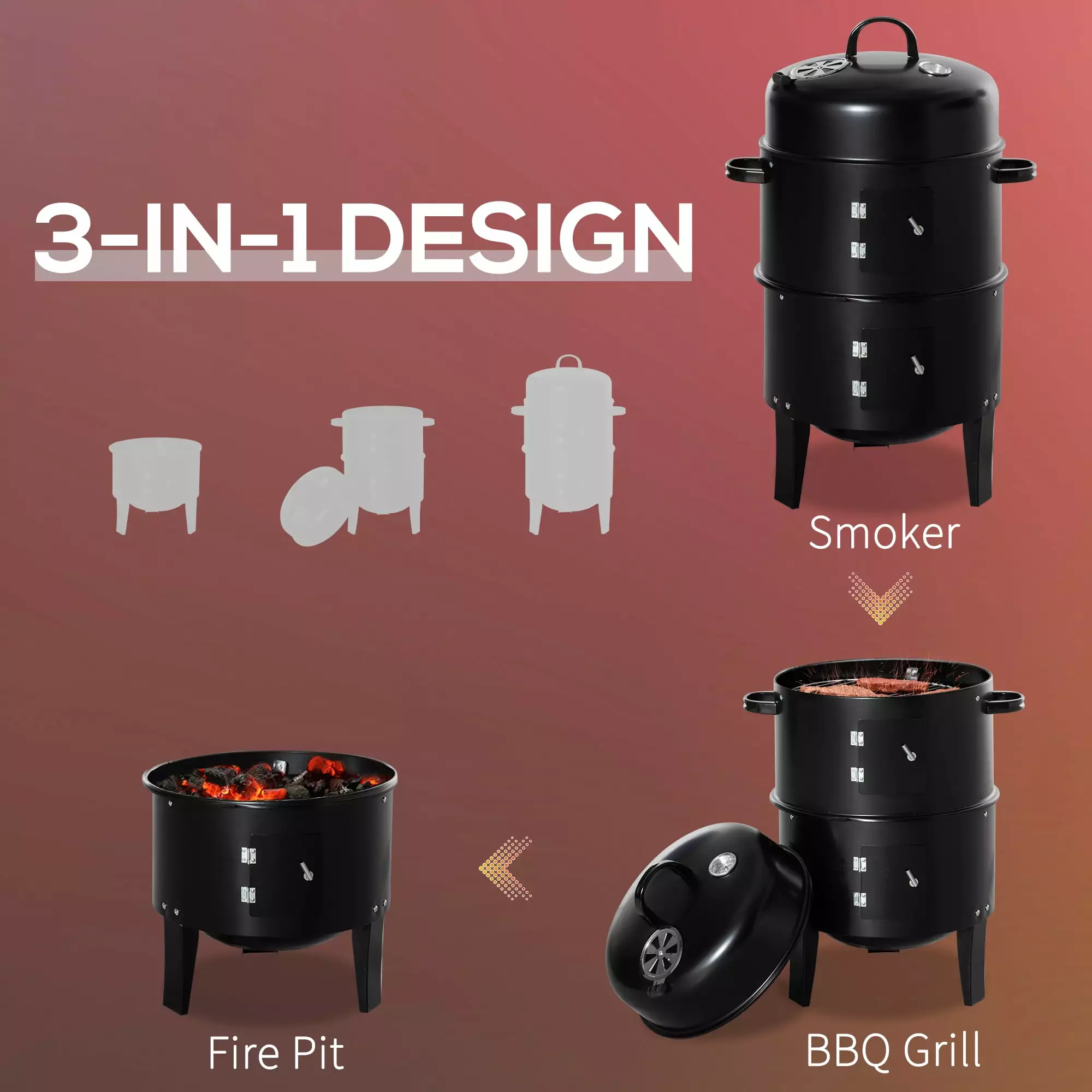 - 3-In-1 Design: You can use this grill as a BBQ grill. a smoker. or a firepit. Purchase a single product. and you’ll get three practical functions.