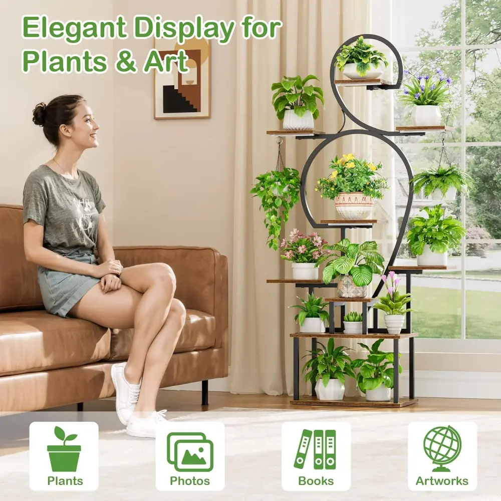 - Versatile 9-Tiered Plant Stand: Developed to maximize vertical space, this 63″ tall indoor plant stand is perfect for showcasing multiple plants in a compact yet elegant display.