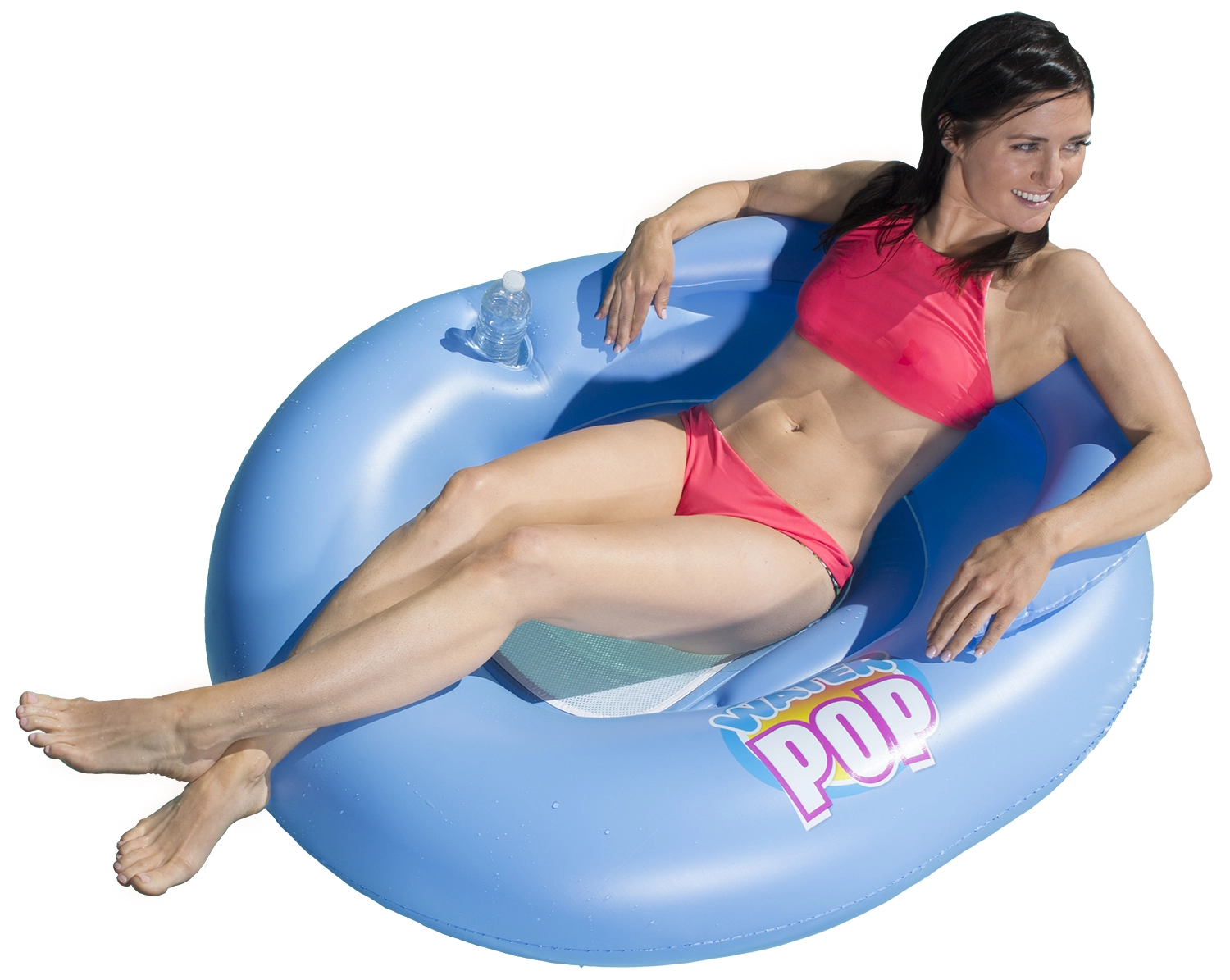 The Water Pop Mesh Bottom Swimming Pool Float Lounge features a compact profile design and is constructed of vibrant 14-gauge vinyl. The contoured backrest provides comfort sitting while the mesh center seat keeps you cool. An integrated beverage holder is built-in for convenience. Measures 48" x 44". approximate deflated size. Available in Blue. Yellow. or Red. Unisex.