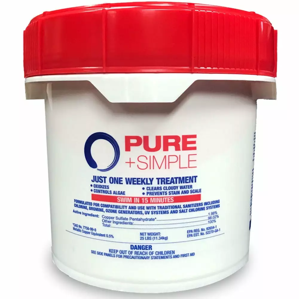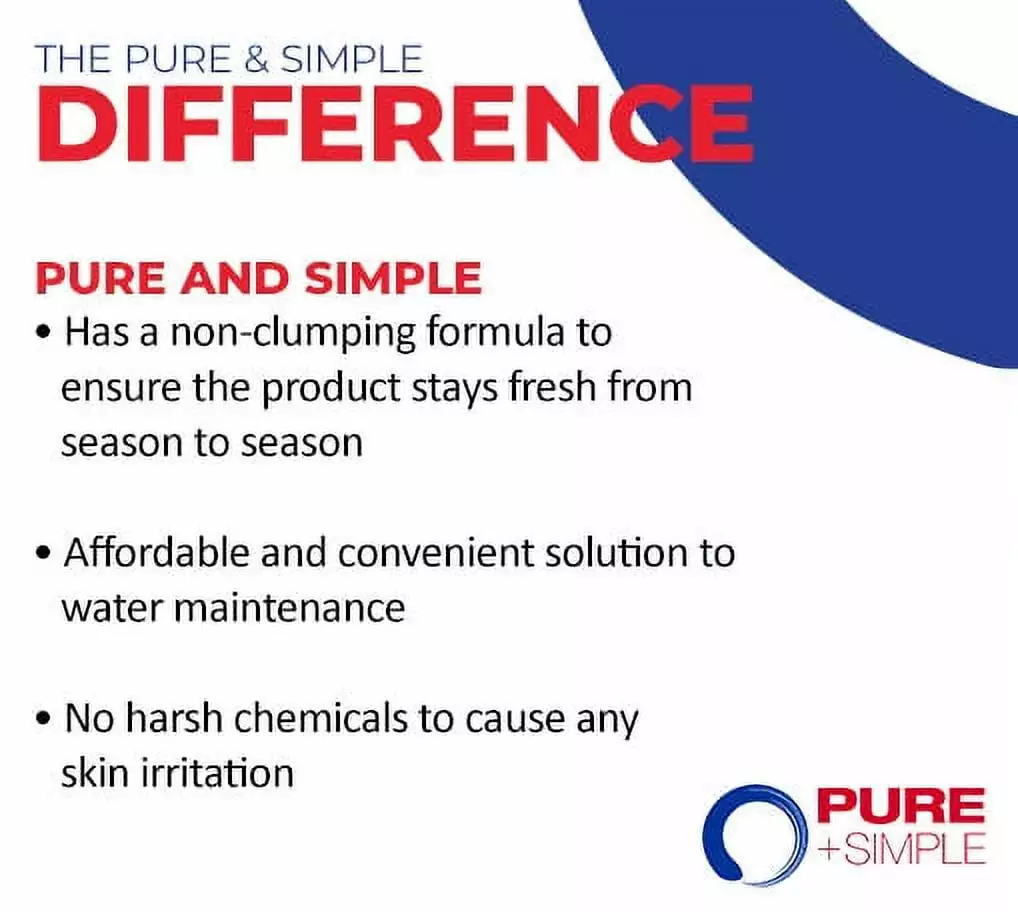Choose a Pure & Simple way to clear and sanitize your pool! Pure & Simple is a safe and effective way of maintaining your pool water without any harsh chlorine. This pure blend of ingredients requires no premixing. can be used once a week and can be swim in after a short 15 minutes. A few scoops can