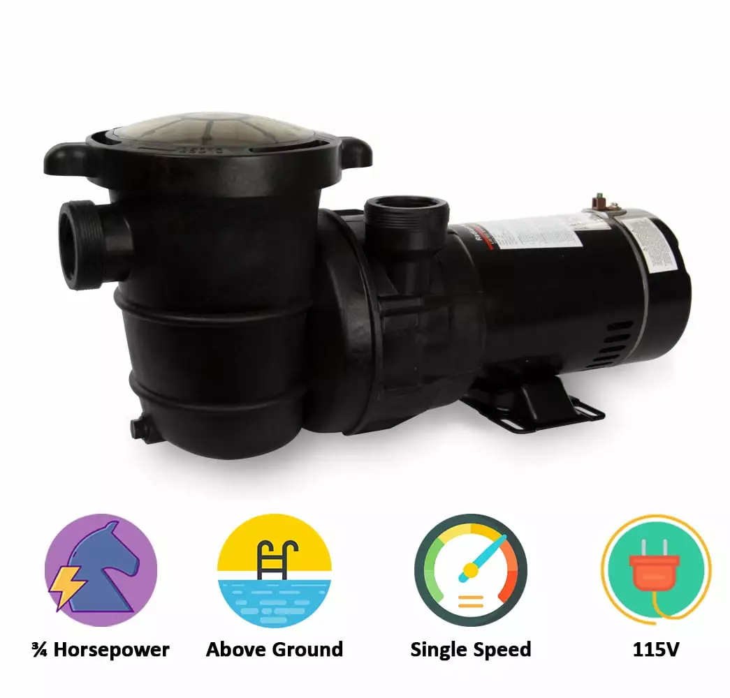 The Rx Clear Extreme Force Above-Ground Pool Pump is a powerful combination of economy. performance. and durability that goes beyond just an ordinary pump. This powerful HP 115 volt single-speed pool pump is designed to operate quietly. making it an economical and effective option for your above-ground pool up to 7.800 gallons.