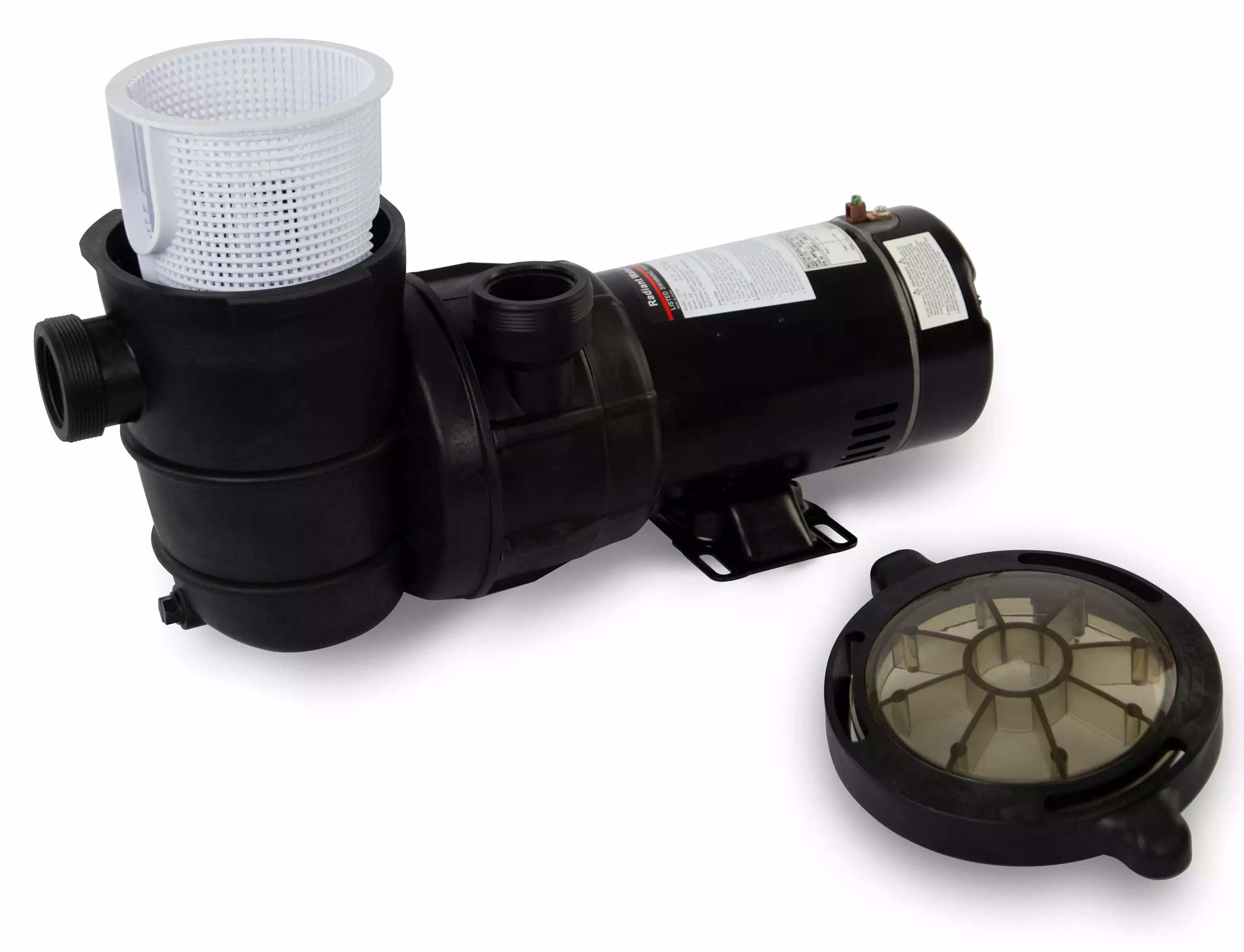 - 2-piece strainer cover with a clear viewport