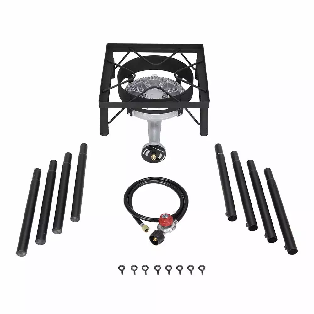 This Black single head outdoor furnace. with High-pressure single burner camp stove. sturdy and durable design. made of cast iron long lasting and good for projects. Including 20psi regulator. hoses and connectors. 0-20 psi adjustable make cook faster and cleaner than other standard propane burners. It is Perfect for camping. fishing. parties. tailgates hunting and home brewing. Do not hesitate. just buy it.