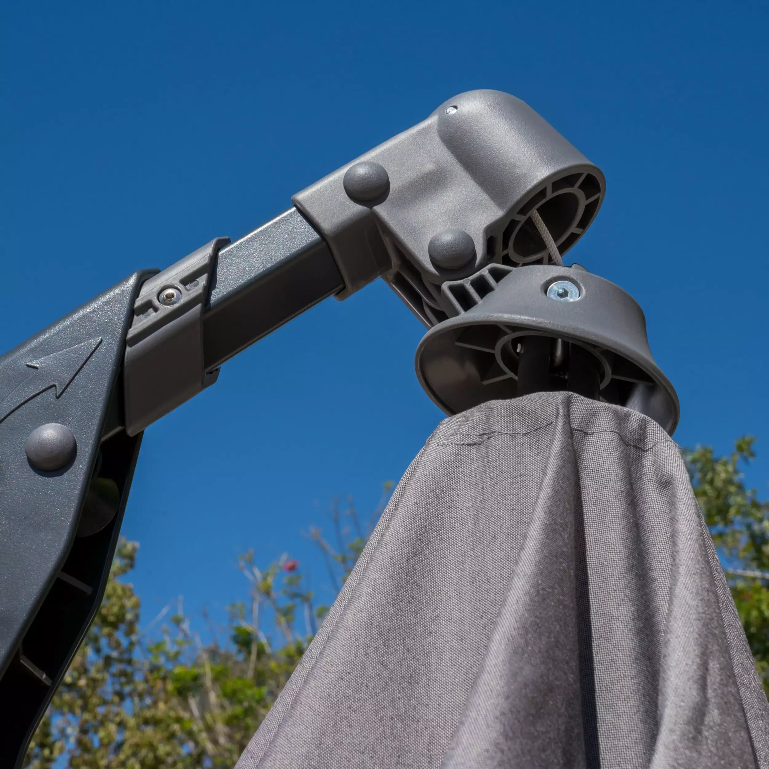 This elegant and fully-adjustable sun shade is perfect for protecting you from the harmful glare of the noonday sun. Featuring a stable base. and the highest-quality mechanisms attached to water-resistant fabrics. this piece will last for years and years. allowing you to enjoy the outdoors while sheltering friends and family from the elements.