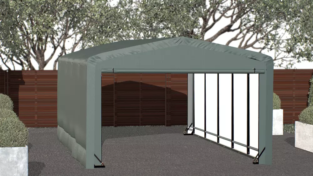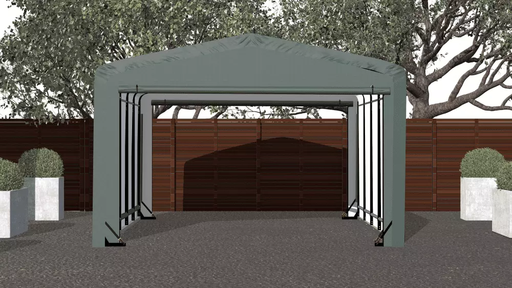 The ShelterTube garage and storage shelter is an excellent option for anyone needing year-round protection for their vehicle. boat. and more. It is built strong with an industrial-strength square tube steel frame and a rugged fabric cover. The ShelterTube is wind and snow-load rated and can take on tough weather.Snow rated at 35 pounds per sq. ft. ground snow load. Wind rated at 75 MPH. Frame made from industrial grade 2 in. 15-gauge square-tube steel which provides a strong frame. A black powder-coated finish is applied on the frame with our proprietary 13-step process which provides superior protection from corrosion. rust. chips. and scratches. The triple-layer fabric covers and end panels are 100% waterproof and engineered to create a tough cover that withstands the elements. The cover is recommended by the Skin Cancer Foundation. Designed for easy DIY assembly and installation with slip-fit connections and self-taping screws. Zippered doors on both ends of the building provide easy access to everything in the building and drive through capability
