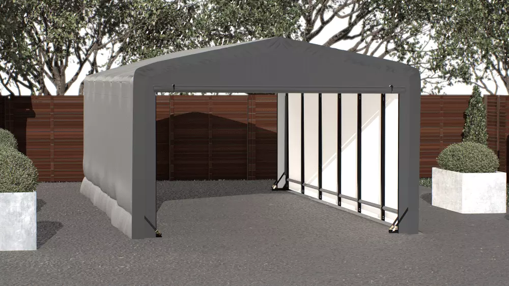 The ShelterTube garage and storage shelter is an excellent option for anyone needing year-round protection for their vehicle. boat. and more. It is built strong with an industrial-strength square tube steel frame and a rugged fabric cover. The ShelterTube is wind and snow-load rated and can take on tough weather.Snow rated at 35 pounds per sq. ft. ground snow load. Wind rated at 75 MPH. Frame made from industrial grade 2 in. 15-gauge square-tube steel which provides a strong frame. A black powder-coated finish is applied on the frame with our proprietary 13-step process which provides superior protection from corrosion. rust. chips. and scratches. The triple-layer fabric covers and end panels are 100% waterproof and engineered to create a tough cover that withstands the elements. The cover is recommended by the Skin Cancer Foundation. Designed for easy DIY assembly and installation with slip-fit connections and self-taping screws. Zippered doors on both ends of the building provide easy access to everything in the building and drive through capability