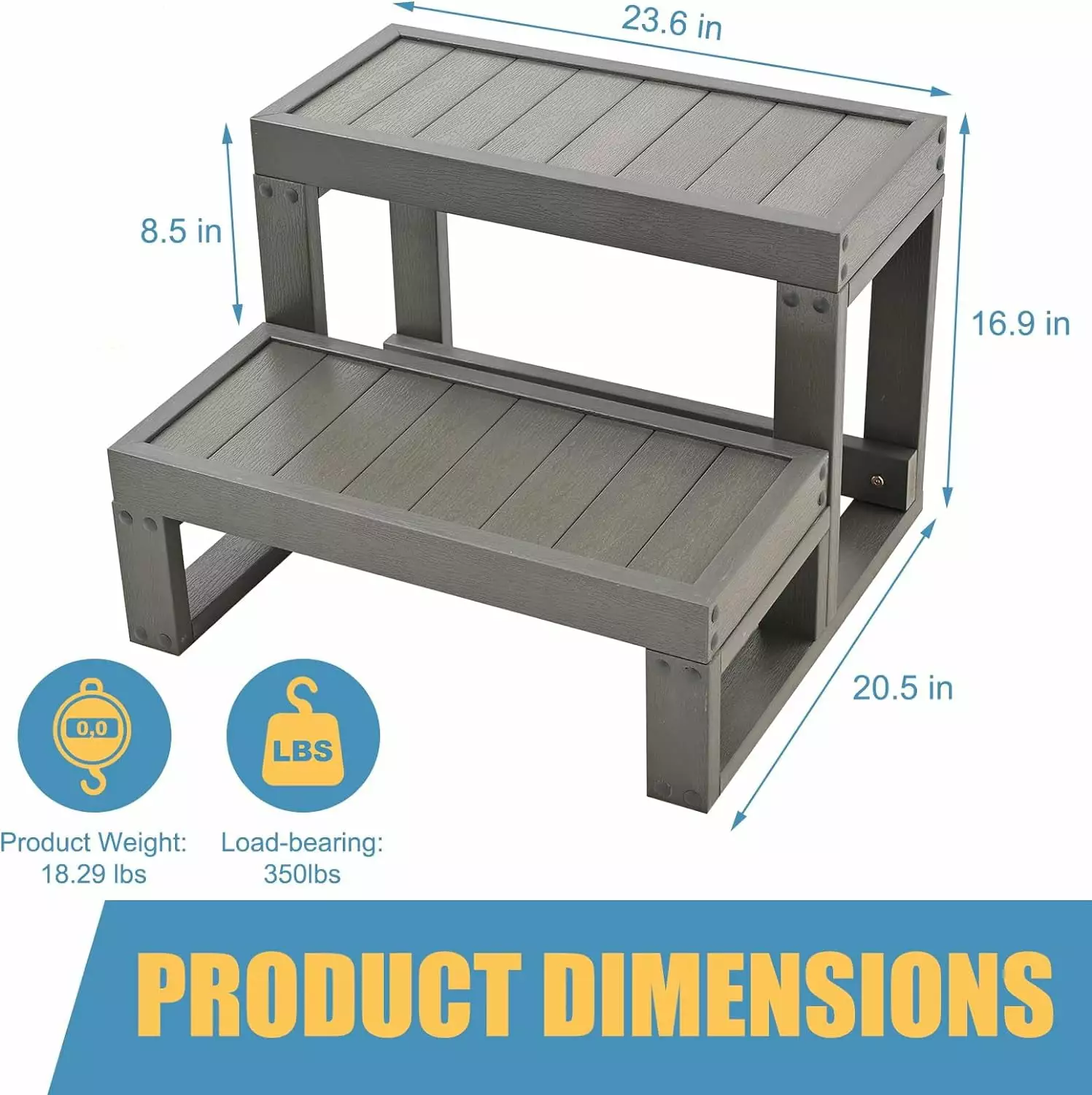 Dimensions and Load-bearing: Our outdoor steps are larger in size and stronger than most other steps. Available in a variety of sizes and strong enough to support up to 350LBS.