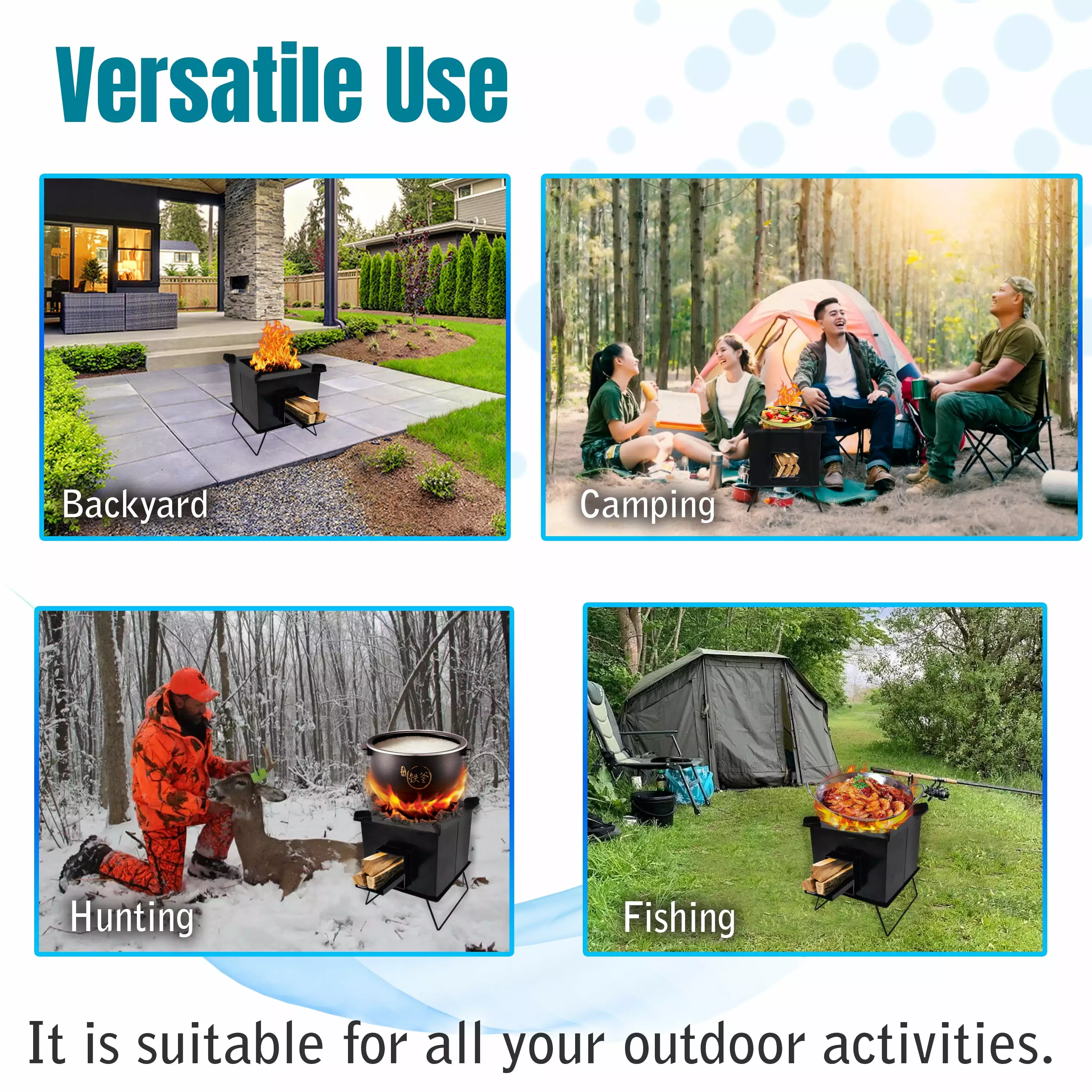 - Versatile Use: This Portable wood stove is suitable for all your outdoor activities such as heating. backyard cooking. camping cooking. hunting. picnic. survival gear fishing. and many more
