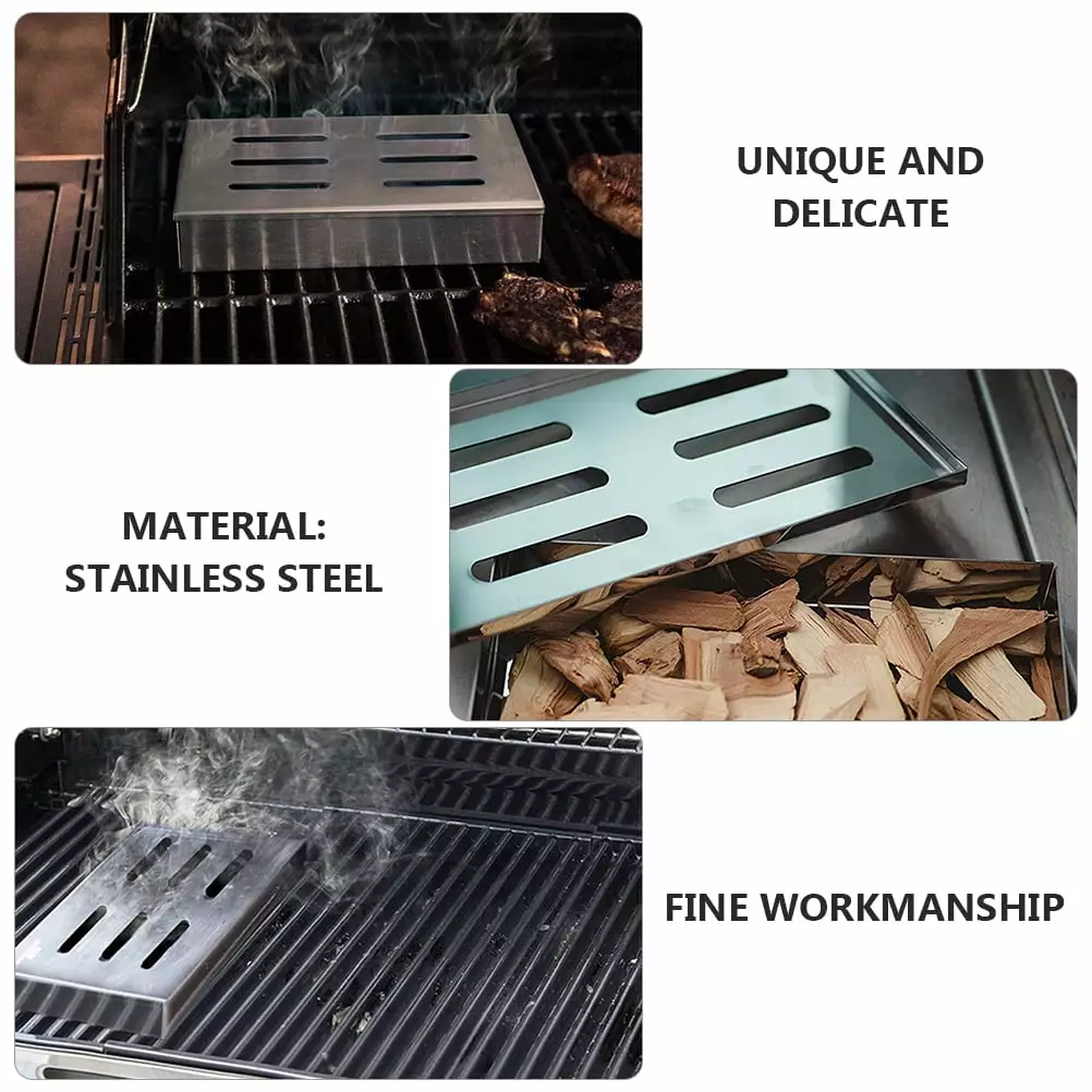 If you are looking for a barbecue smoker box with reliable quality and reasonable price. I will tell you that our smoker box will be your best choice. We adopt premium material. so you can keep it for a long time. Though it is simple in design. it’s so practical when you use it. A nice BBQ helper for you.