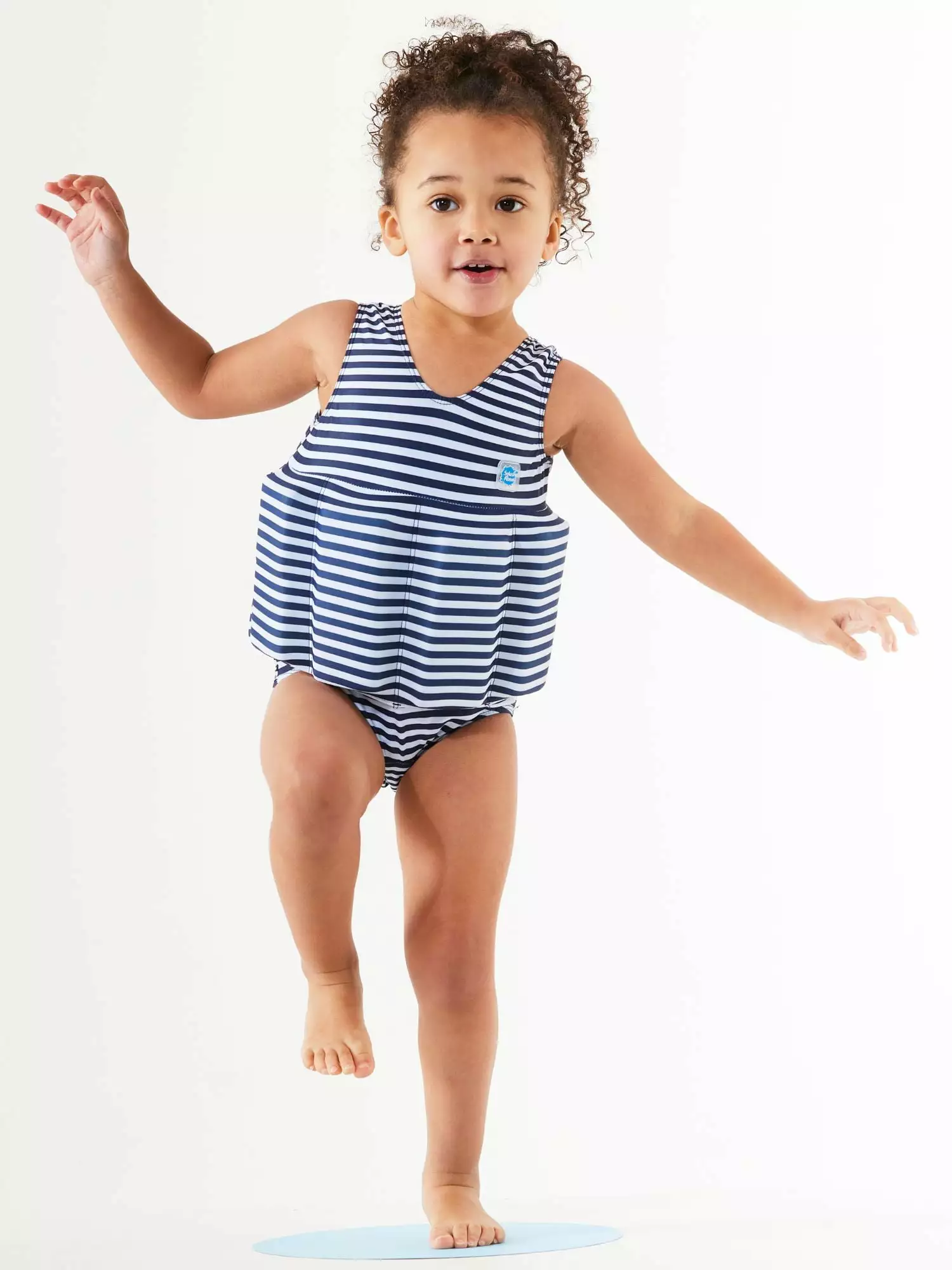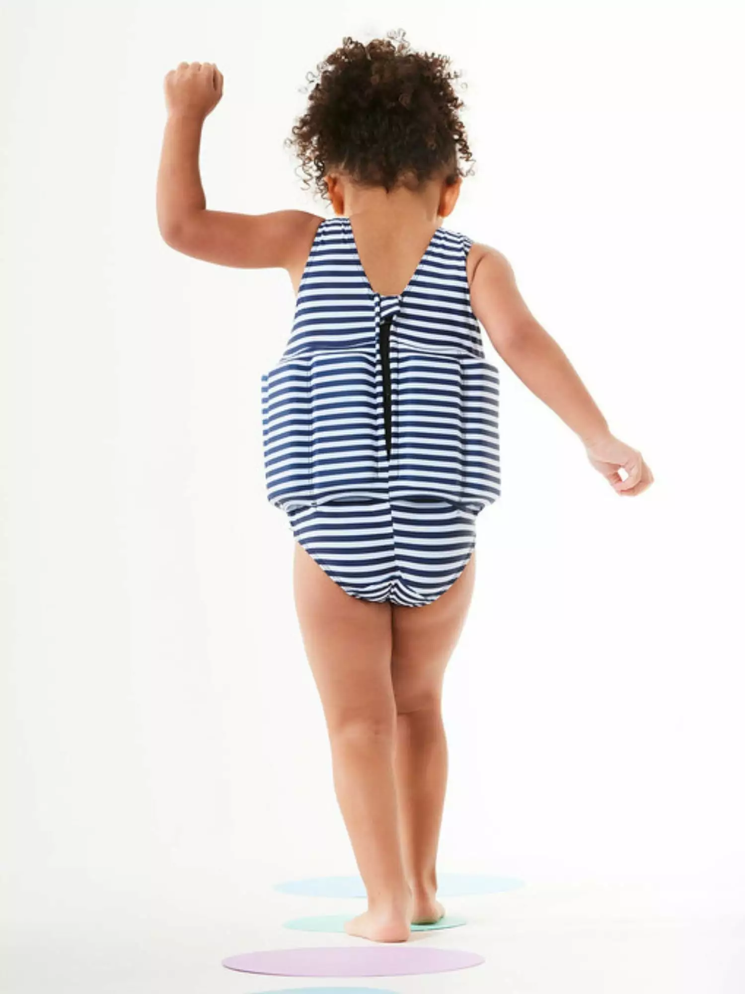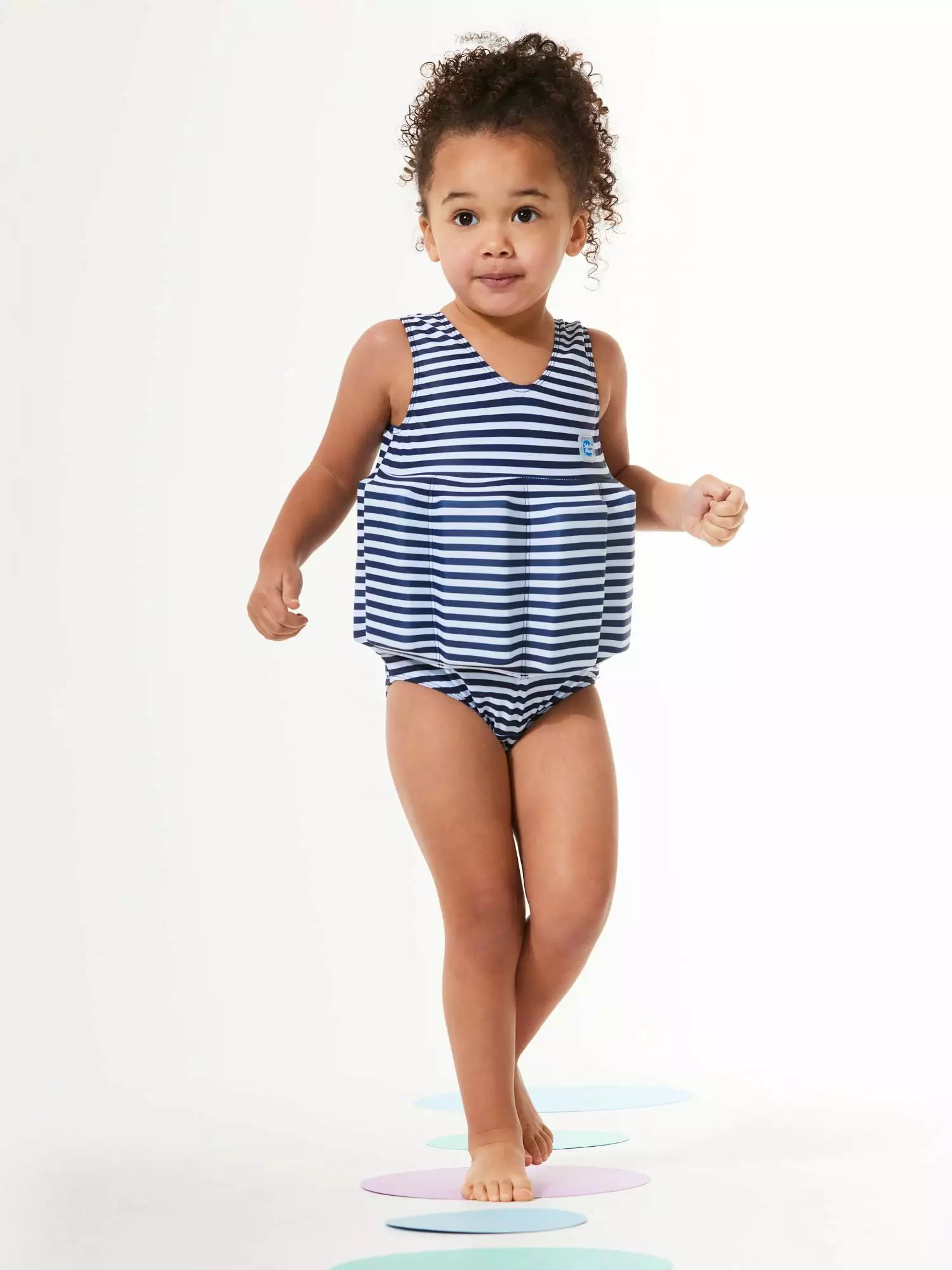 The Splash About Girl’s Floatsuit is designed to help children learn to swim. Each Floatsuit comes with 16 removable float bars. that can be gradually taken out as the child finds their natural water balance and grows in confidence in the water. The Floatsuit holds children in the correct learn to swim position. and leaves their arms unrestricted. to enable them to practice their strokes without any bulky armbands getting in their way. This adjustable buoyancy system is explained in detailed instructions that come with the floatsuit. to ensure a safe and fun swimming experience for you and your child. Please note. the Floatsuit is not a life- saving device and must be used under the constant supervision of an adult. It is normal for a child to lean forward towards to water when first wearing the Floatsuit. Hold their hands until they find their balance in the suit. The child is in the correct position when their shoulders are level with the water and their body tilted forward slightly. Holds children in the correct position for learning to swim No restrictions to the arms and legs Removable Float bars to adjust buoyancy Easy change zip at the back of the floatsuit Full Instructions included No need for Bulky Armbands.