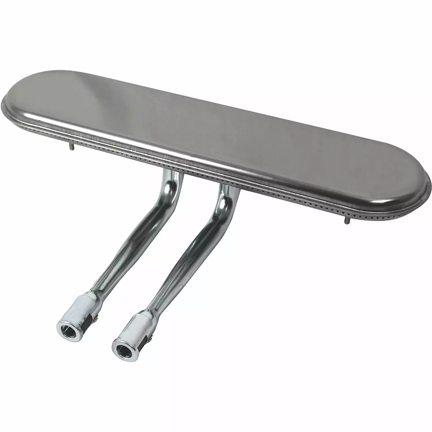 - Dual stainless steel burner with independent controls for separate left and right heat zones allow cooking over indirect heat