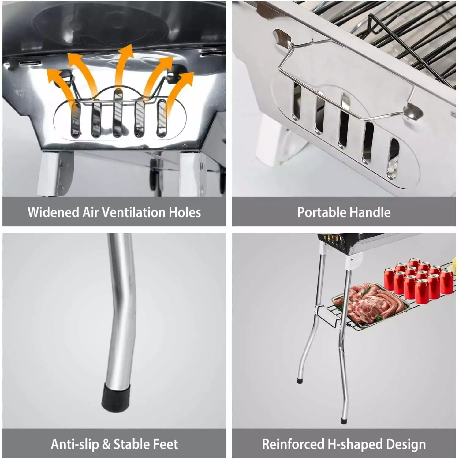 - [Reinforced Legs & Non-slip Design]The outdoor barbecue grill with H shape reinforced legs and Non-slip feet design.more stable and safer when using.Our grill max load up to115kg/253.53lbs.