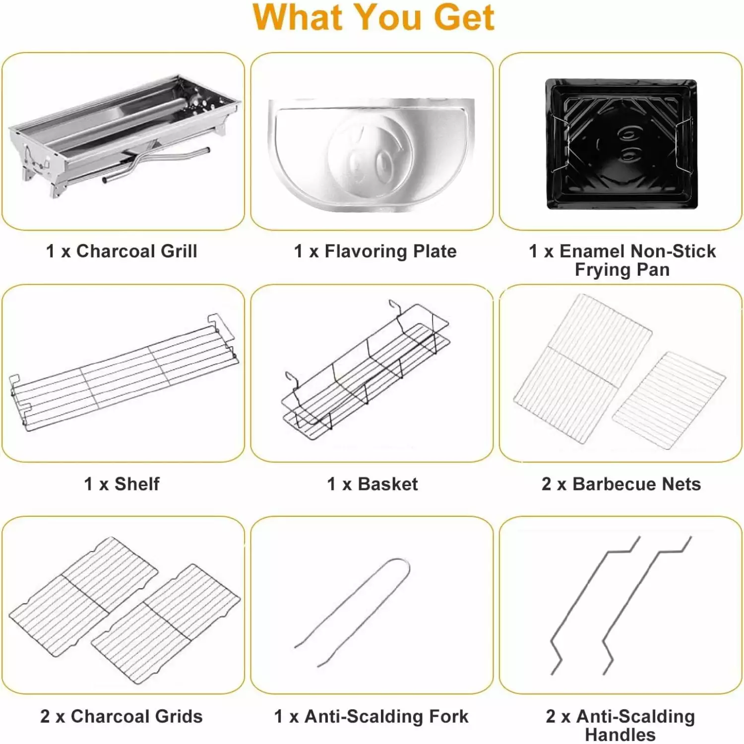- [Easy to Assemble & Use]The camping grill charcoal is super easy to set.you can finish it in few minutes through watch our video or user manual.Please check the accessories carefully before signing for the package. Any questions. welcome to contact us.