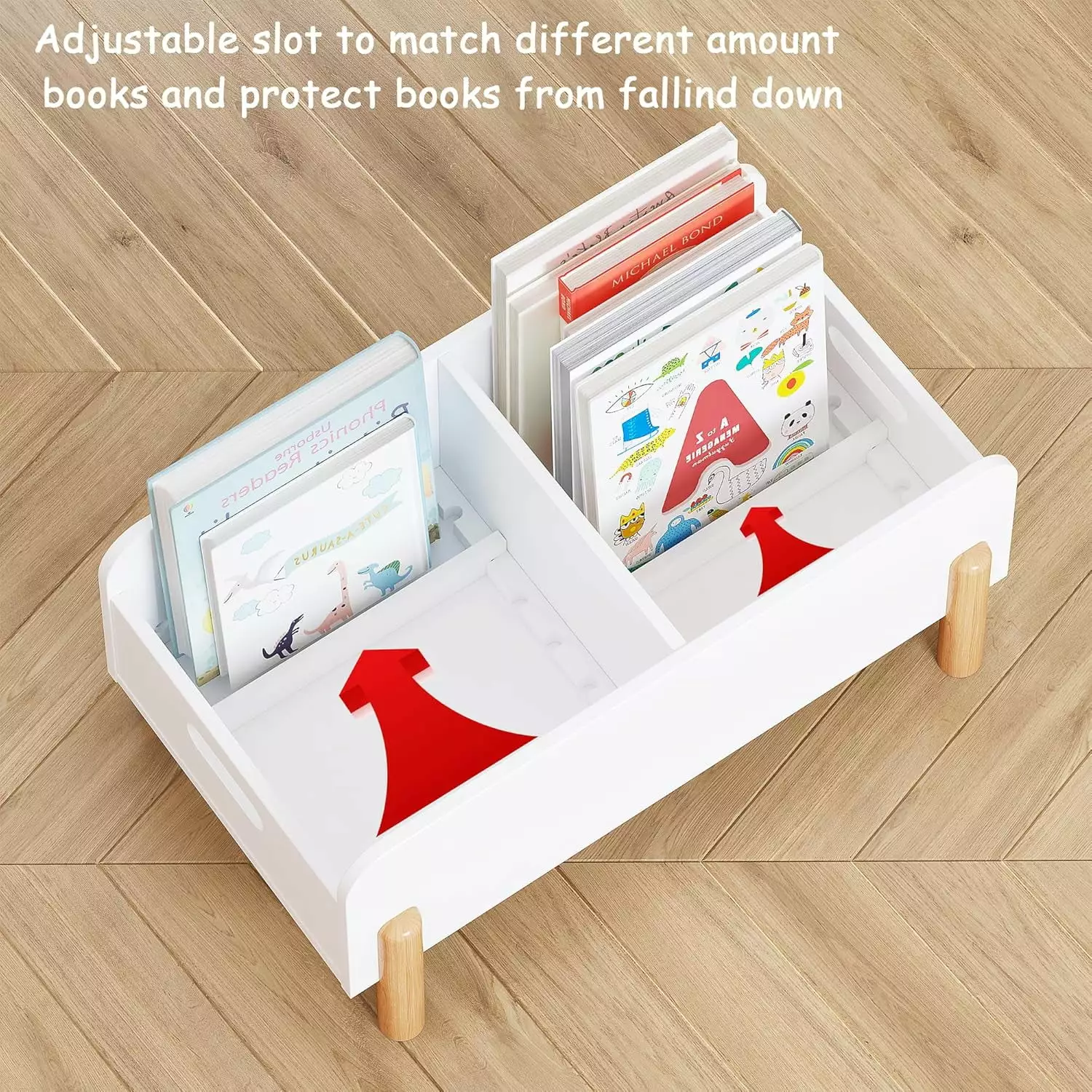 STAROUS Montessori Bookshelf for Toddlers. Wooden Book Caddy with Adjustable Divider. Floor Book Display. Toddler Book Rack. Kids Bookcase for Classroom Kids Room Nursery