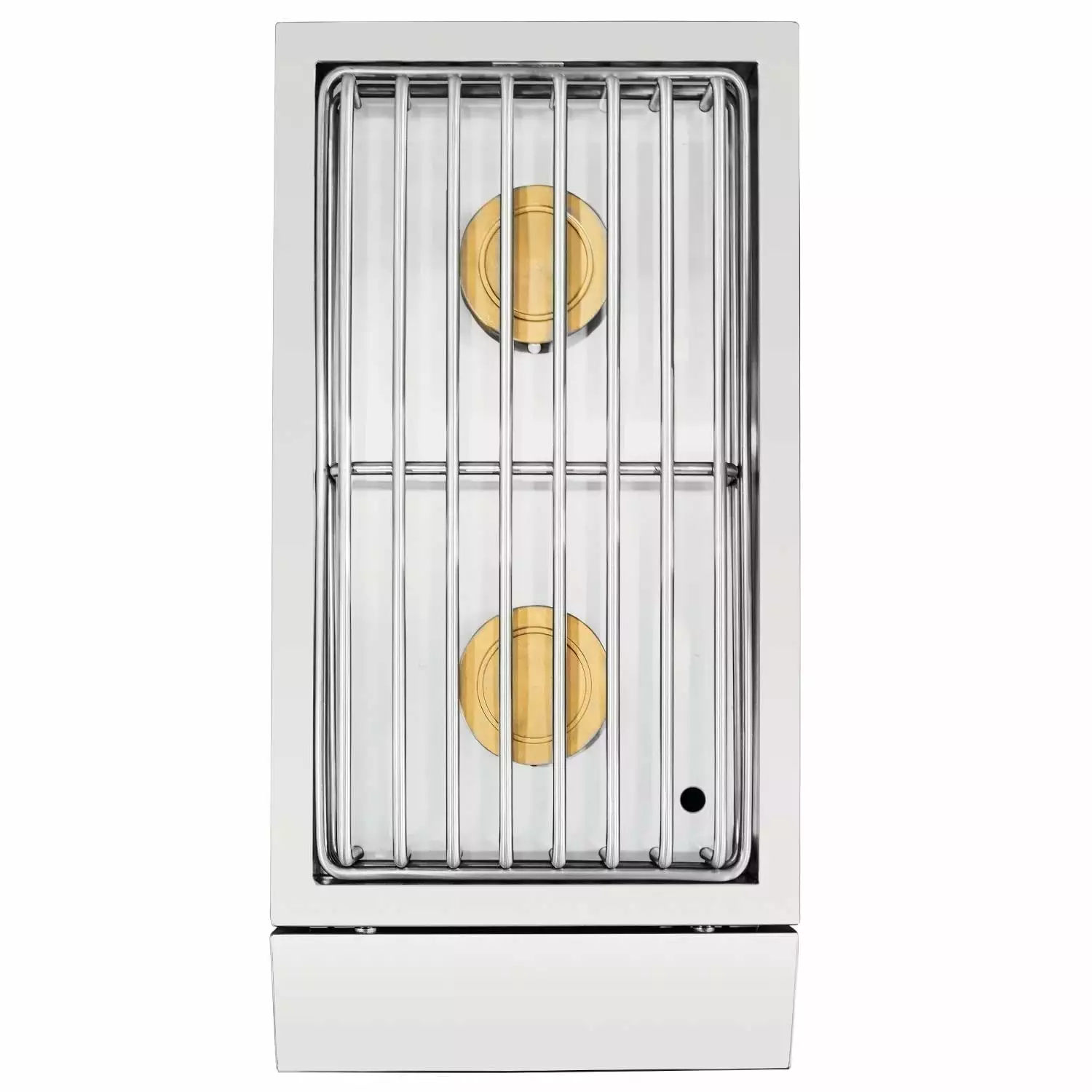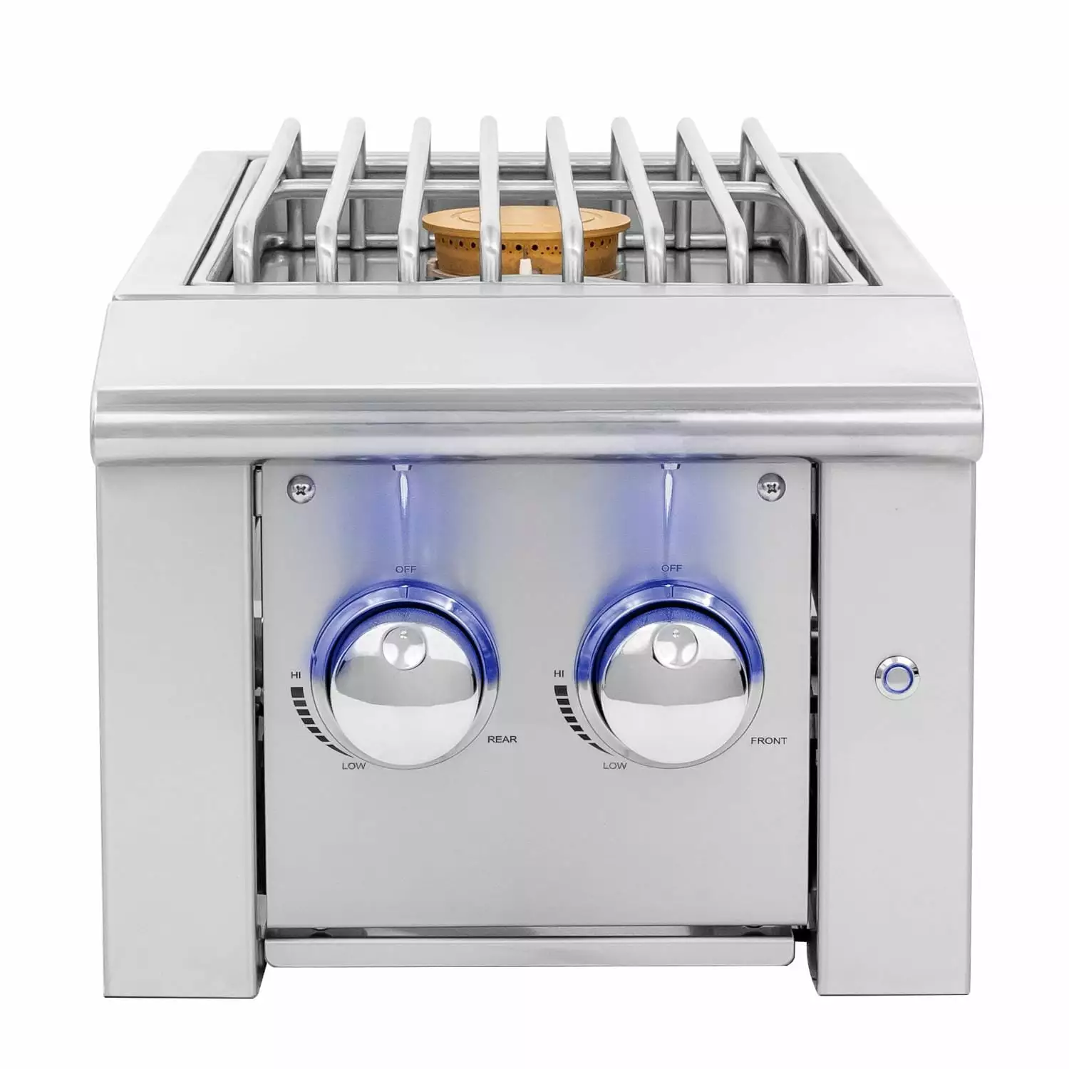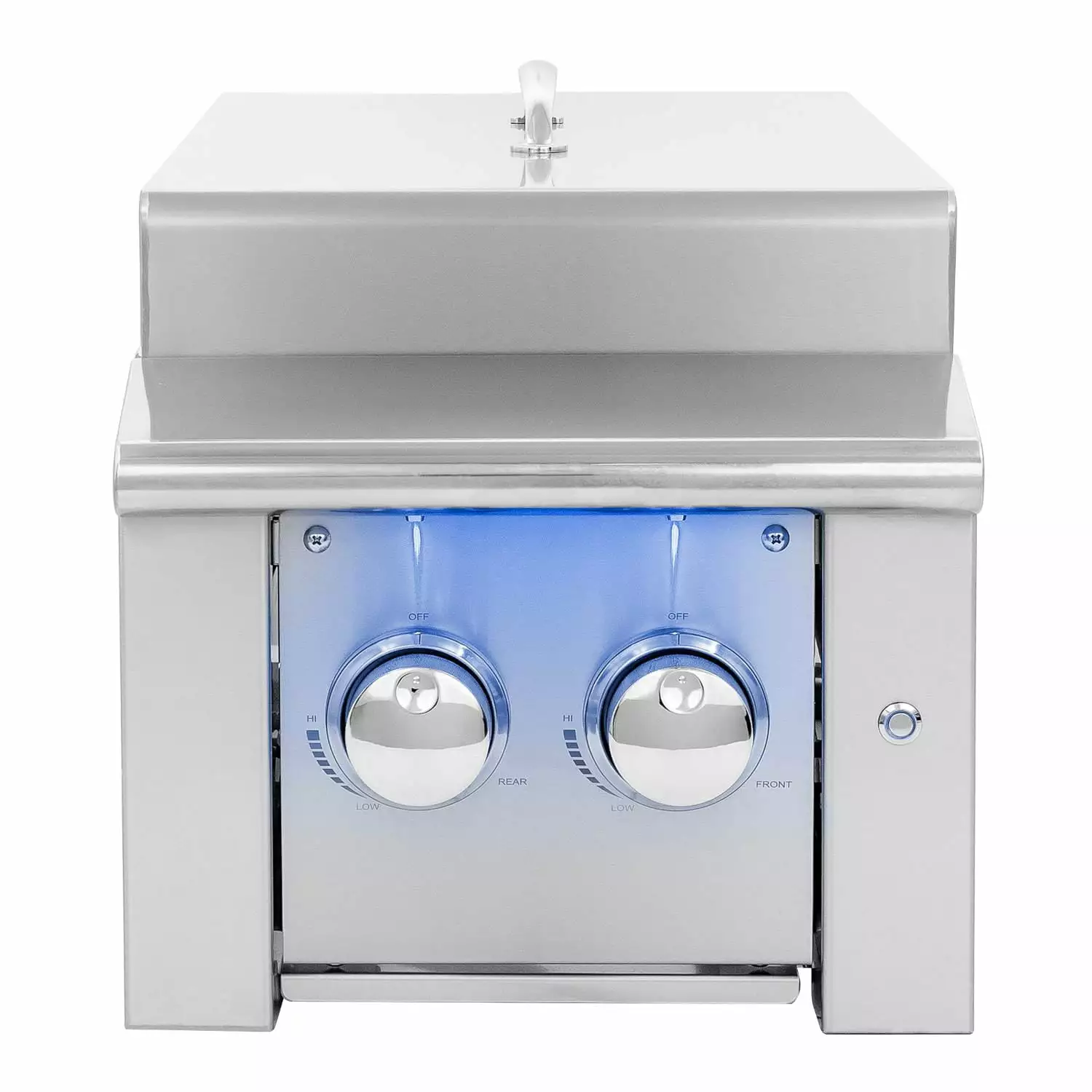 Summerset Alturi Built-In Propane Gas Double Side Burner – ALTSB2-LP. ALTSB2-LP. Conventional Side Burners. The Summerset Alturi series combines luxury with raw power. creating a new level of professional outdoor kitchen accessories. This propane gas double side burner features two heavy-duty 17.500 BTU solid brass burners for exceptional performance and heat retention. The side burner is constructed from precision cut 304 grade stainless steel for maximum longevity in your outdoor kitchen. The 9mm stainless steel cooking grates provide a sturdy cooking surface for pots and pans of nearly any size. It includes a stainless steel lid to protect the burner when not in use. Simple push and turn ignition gets the fire going quickly and a full-width drip tray makes cleanup simple. The ALTSB-2 also includes LED front panel lighting which matches the styling of Summerset Alturi grills for a coordinated look….
