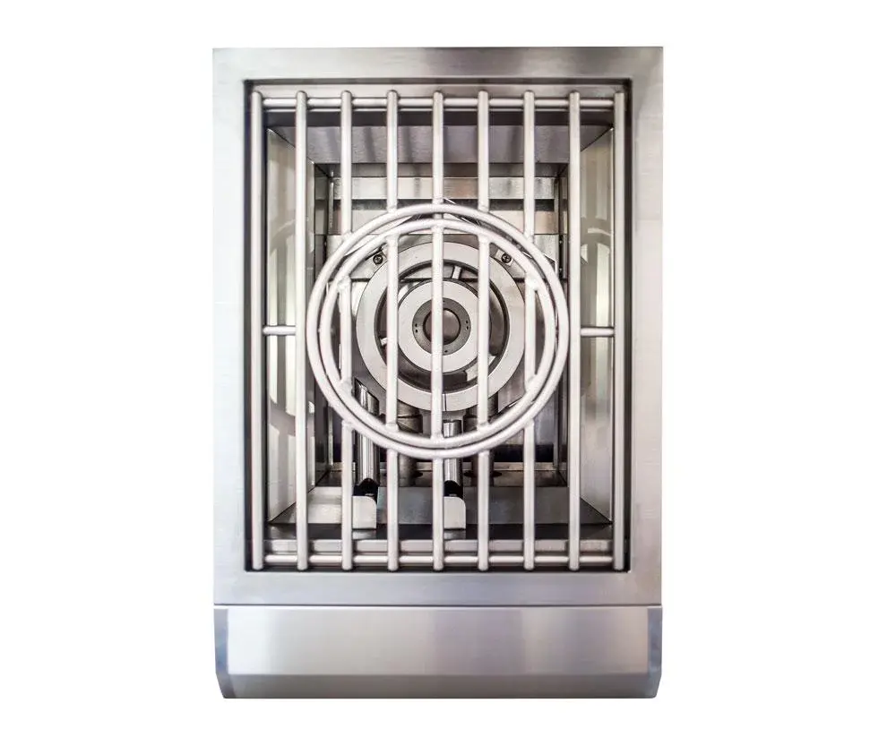 Combine the comfort of an indoor kitchen range with all the benefits of being outside. Specially designed for performance and function, our AMG Power Burner is the perfect addition to your outdoor kitchen. Commonly used for finish cooking, sauces, or heating foods that require lower, more controlled temperature than your grill. The AMG Power Burner offers the convenience of range top cooking and grilling simultaneously. The Power Burner has #304 stainless steel construction, 60,000 BTUs of power, robust rust-proof steel grates, stainless steel lid, sleek design, and industry-top warranty.