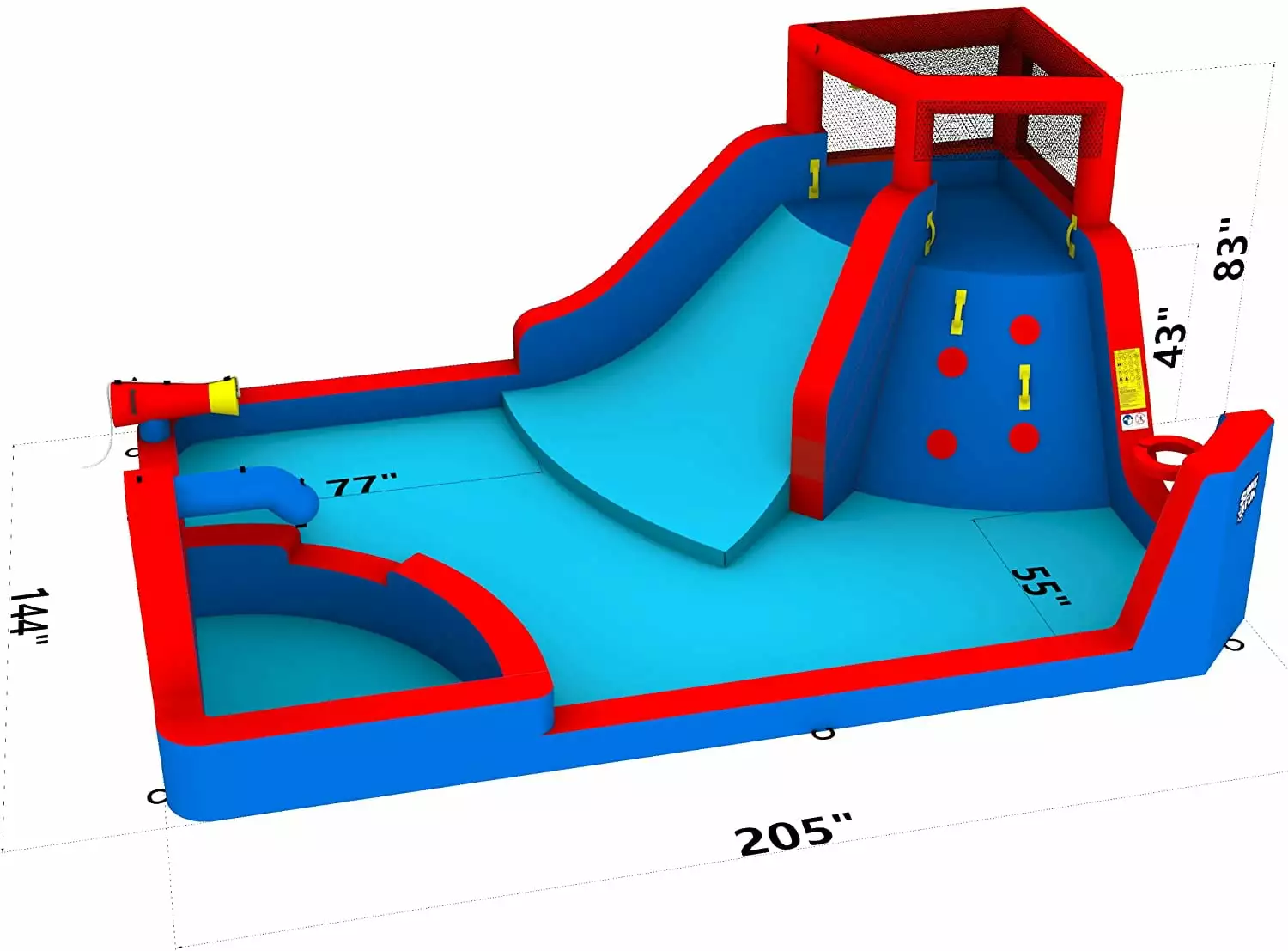 This inflatable pool has a soft bounce water slide. pool area & pool slide. Kids will have loads of space to play on this blow up water slide. The climbing wall goes to the top of the inflatable pool slide so they can zoom down the waterslide. Made with nylon. the kids water slide surfaces are built to last. Kids will be able to play and splash to their heart’s delight in this inflatable pool with slide. Better than other blow up water slides for backyard.