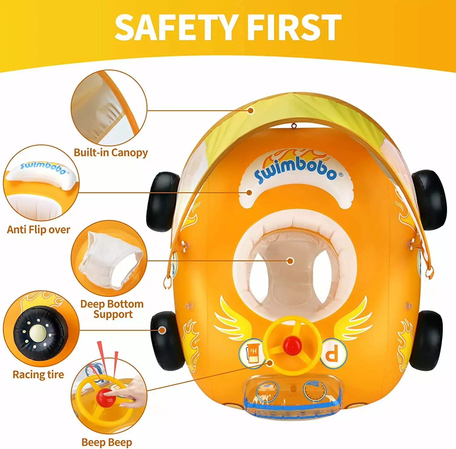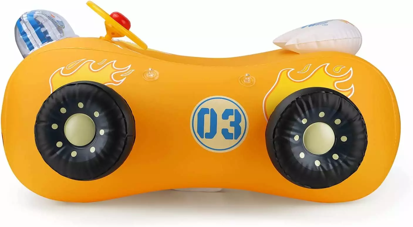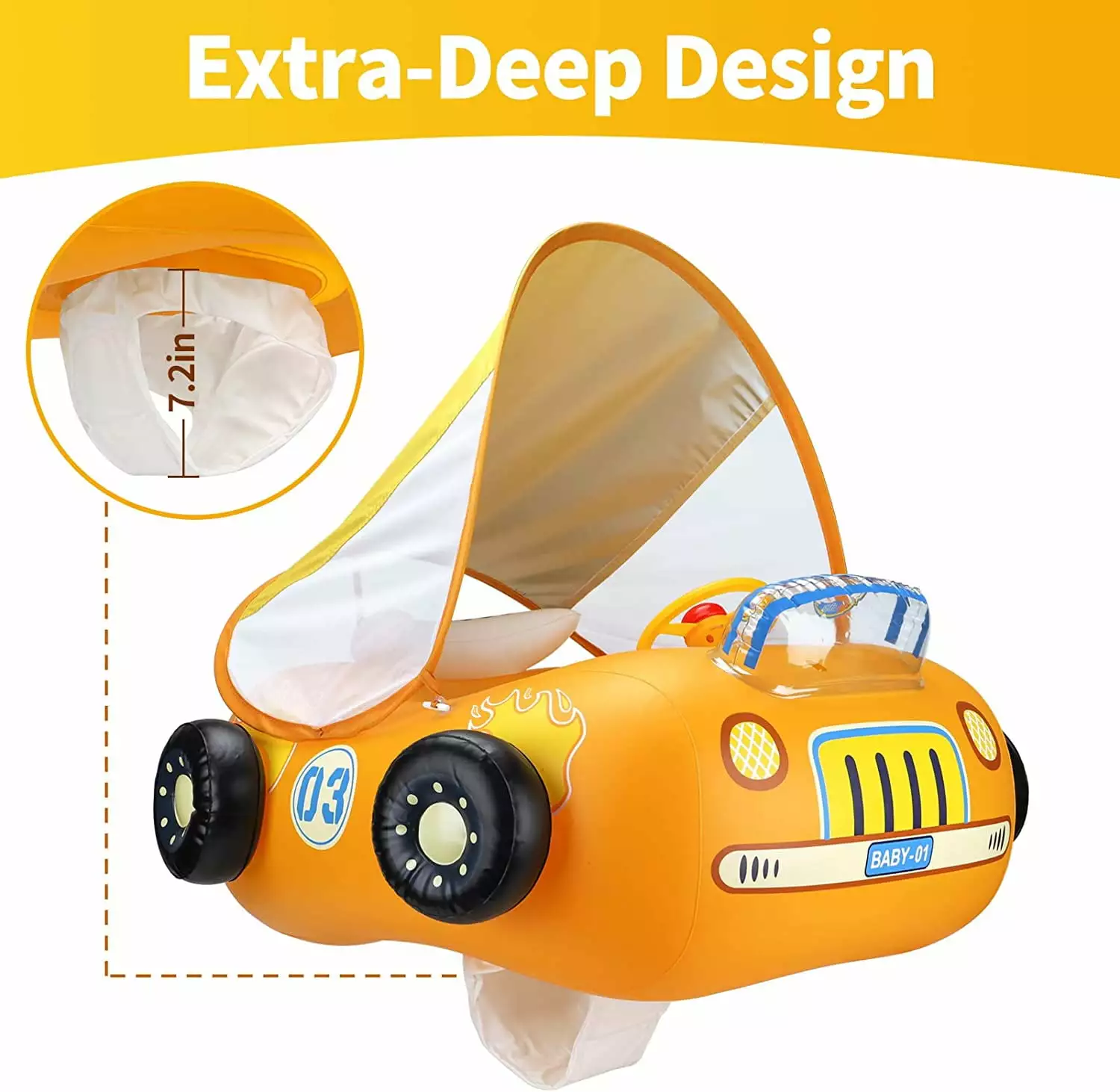- Attractive shape 3D Cool Car boat pool float will introduce your baby to the joys of water. Suitable for children 2-7 years old.Removable&adjustable canopy features a multi-position plastic hinge. which allows for 120-degree range and UPF 50 sun protection.