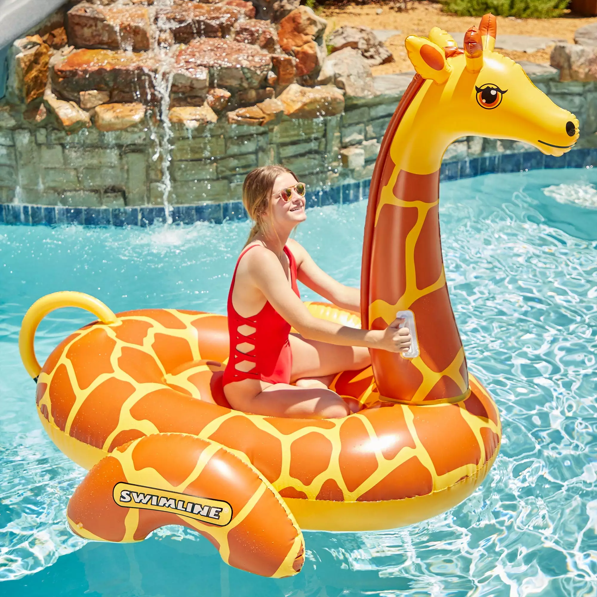 - {OVERSIZED DESIGN} This Original Ride-On Giraffe float features an extra large base design. providing plenty of room for lounging & relaxation. Perfect for 1 to 3 individuals looking for a spacious & comfortable way to relax & play in the water