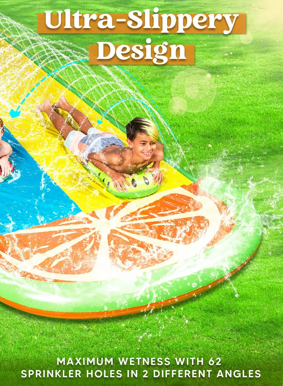 - Our double-lane. extra-long water slide gives kids an extra fun sliding experience. where they get more time spent sliding and having an awesome time with family and friends.
