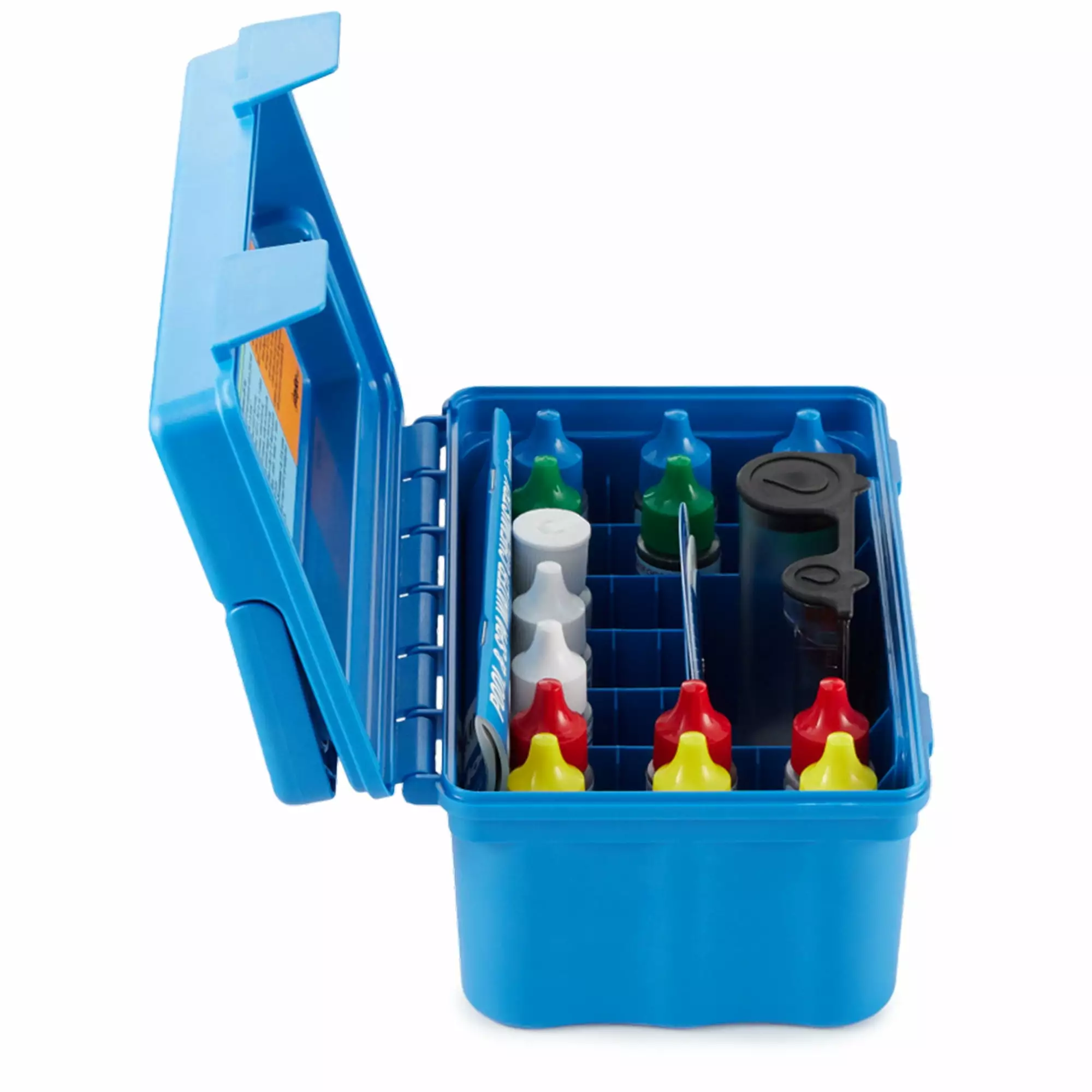 - What’s included: Carrying case. water comparator. water balance calculator wheel. base demand reagent. DPD reagent #3. DPD reagent #2. DPD reagent #1. acid demand reagent. sulfuric acid. calcium buffer. pH indicator solution. total alkalinity indicator. calcium indicator liquid. thiosulfate. cyanuric acid reagent. hardness reagent
