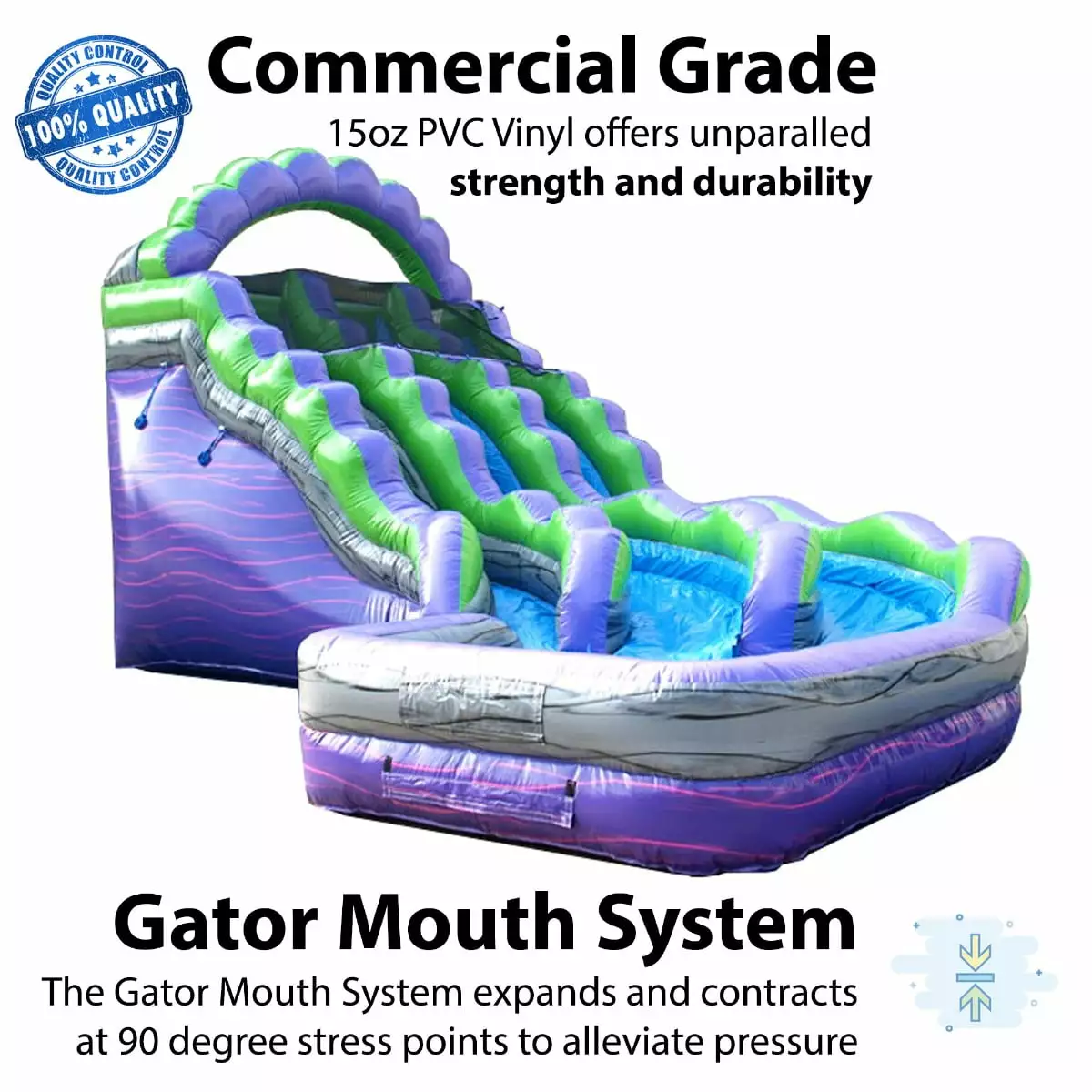 - TentandTable Commercial Inflatable Water Slide. Purple Marble Curved Double Lane with Blower. 19′