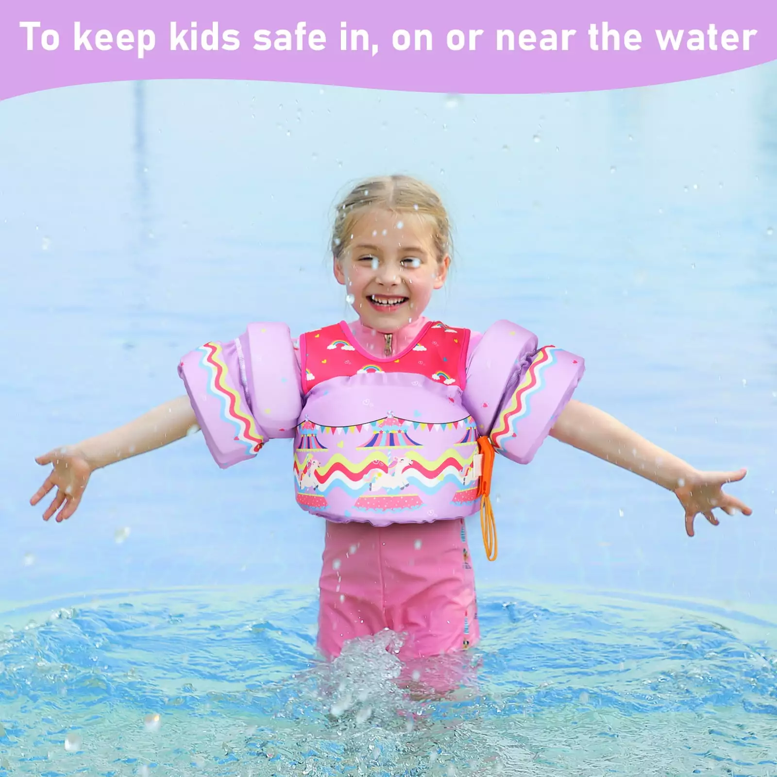 Sufficient Buoyancy: Make a splash with our premium kids swim vest! It provides Type III flotation device with 11 pounds of buoyancy for keeping your child afloat while allowing them the freedom of movement and practicing and strengthen their stroke in learning swimming. Comfort and Free: Your child will love how comfortable and mobile they feel while wearing the swim armband sleeve. The adjustable straps on the back ensure a secure fit that can be customized to your child’s needs. easy for kids to put on and take off. Durable & Colorful: Made with high-quality Polyester. the swim vest is durable and can withstand the wear and tear of regular use. It’s a great investment that will last for years to come. The bright colors increase visibility in case of an emergency. giving you peace of mind while your child enjoys the water. Scope of Application: Our toddler floaties are perfect for kids aged 2-9 years with a weight between 20 to 60 lbs. Perfect for different kinds of occasions. like pool. beach and water park.Get ready for a fun-filled summer with the pool floaties! Best Gift for Your littles One: Our swim armband is designed with safety in mind. Give your child the confidence to explore the water in style and safety with our swim armband. It’s a fun and practical addition to any water-loving family’s gear collection!