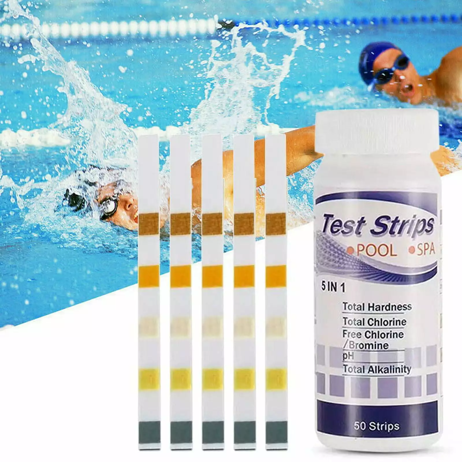 TOPOINT 50pcs Multipurpose Chlorine PH Test Strips – SPA and Swimming Pool Water Tester Paper