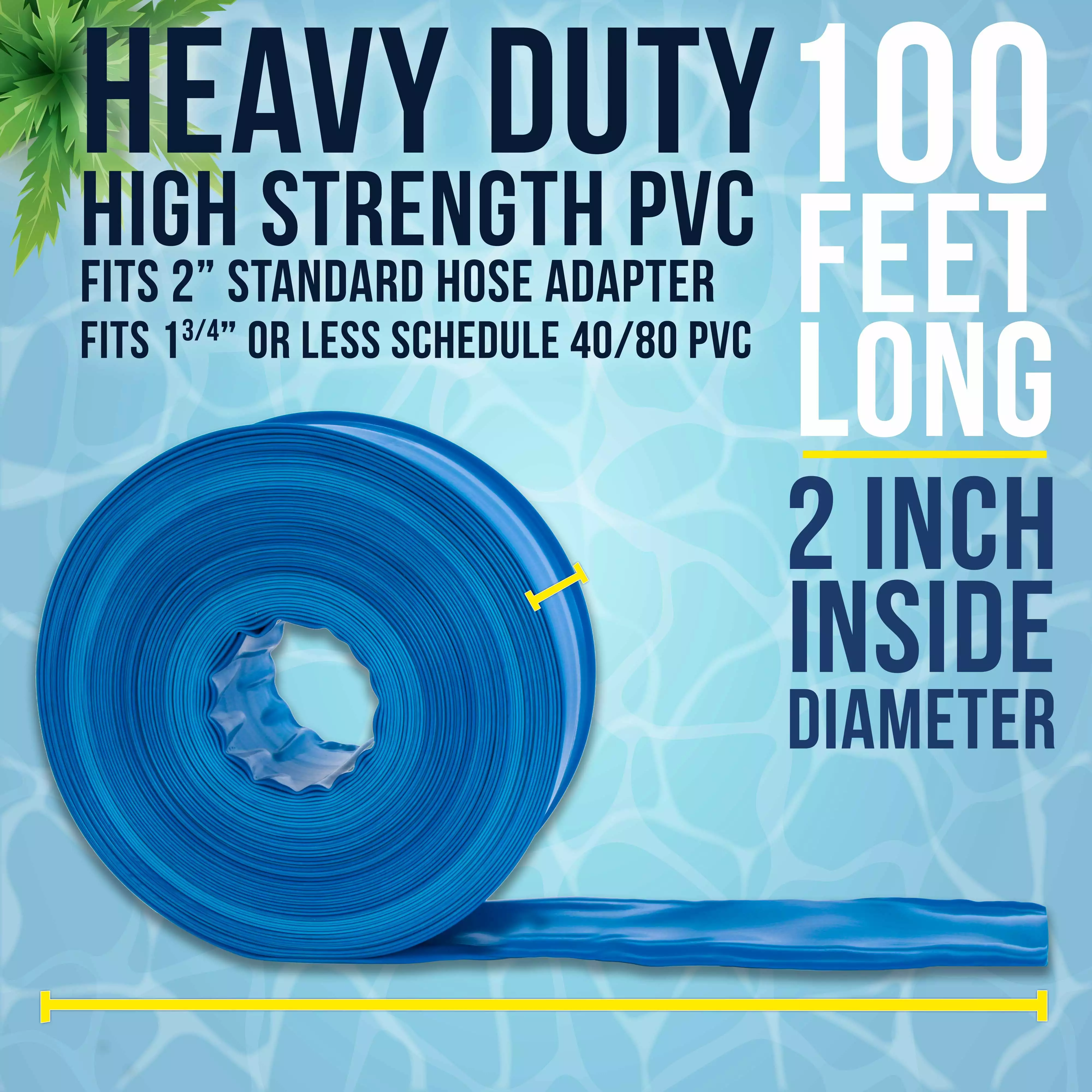 - Heavy duty blue PVC swimming pool backwash hose with hose clamp