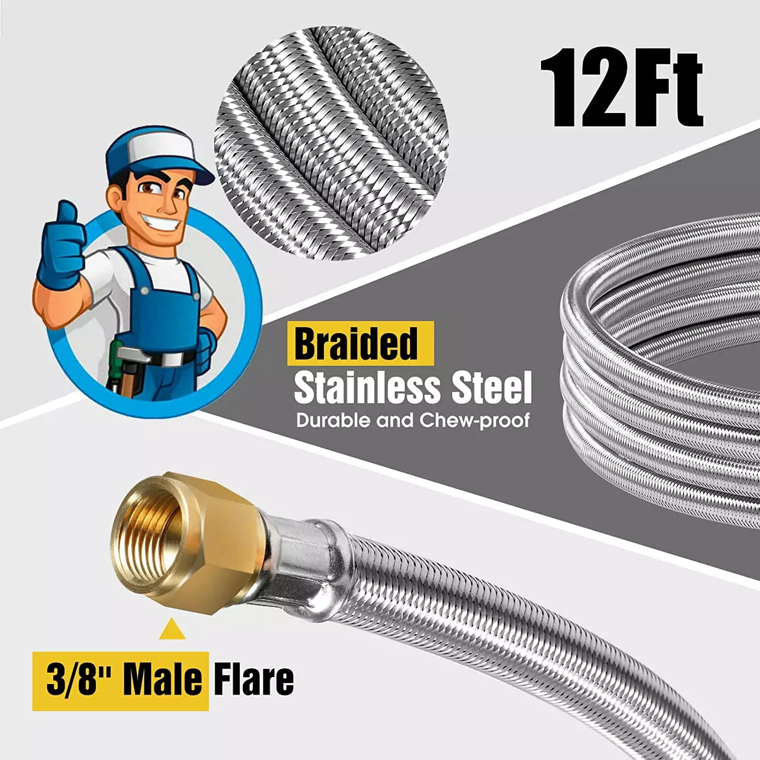 - [Standard Connector]This 3/8 female flare fitting x 3/8 female flare fitting propane hose with 5 different types conversion coupling adapters. Excellent 3/8 propane hose conversion adapter kit easy to store and carry. also flexible to use. saves space. This 12 Feet braided stainless steel high pressure propane extension flexible hose with standard connectors kit takes all your worries away. Best ideal for RVs. travel trailers.