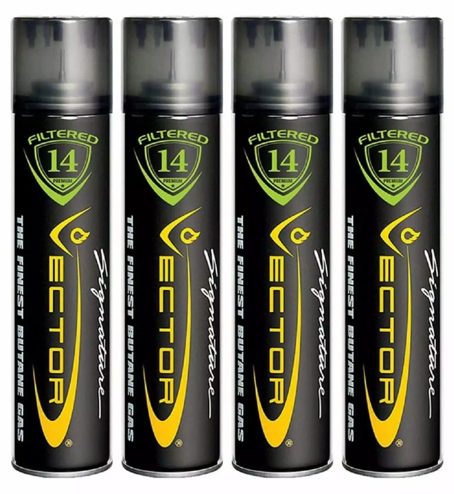 Vector 14x Filtered Luxury Butane Gas Refill 320mL 4 Cans for Lighters