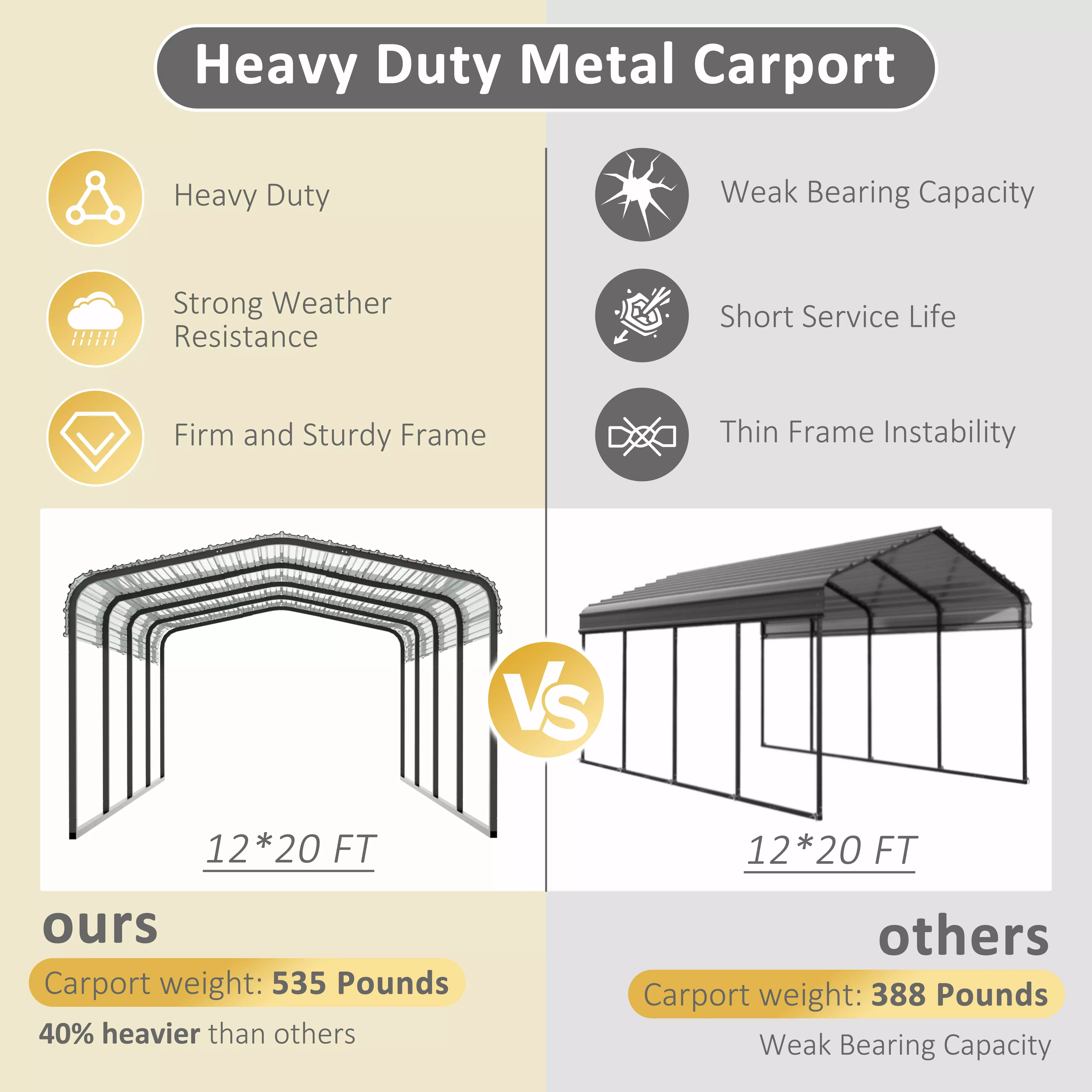 Our extra large metal carport. a reliable and sturdy solution to protect your vehicles and outdoor equipment. This carport is designed to withstand any weather conditions. ensuring long-lasting durability and protection. Invest in our metal carport and enjoy the peace of mind that comes with reliable protection. With its weather-resistant construction. sturdy frame. easy installation. and spacious storage. this carport is the perfect solution to safeguard your valuable assets.
