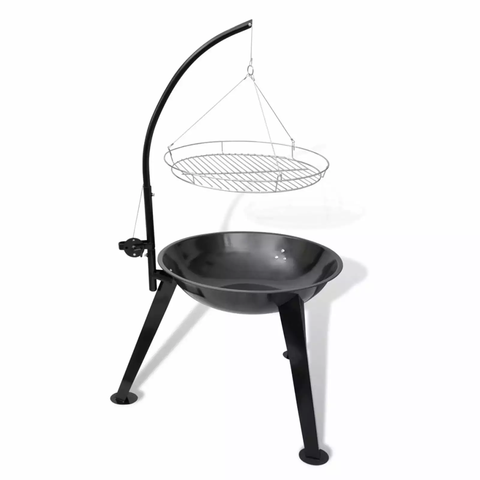 This classical charcoal barbecue stand. made of sturdy and durable steel. has a high-quality construction. Working on charcoal. this barbecue stand features multiple functions like grilling. baking and smoking for picnics. parties. campings. outings. etc. This barbecue stand features a hanging grill plate which is height adjustable. thus you could decide barbecue height as you like. With a diameter of 22.8. this grill plate provides a relatively large space to accommodate your food. making it ideal for serveal people to use at same time.