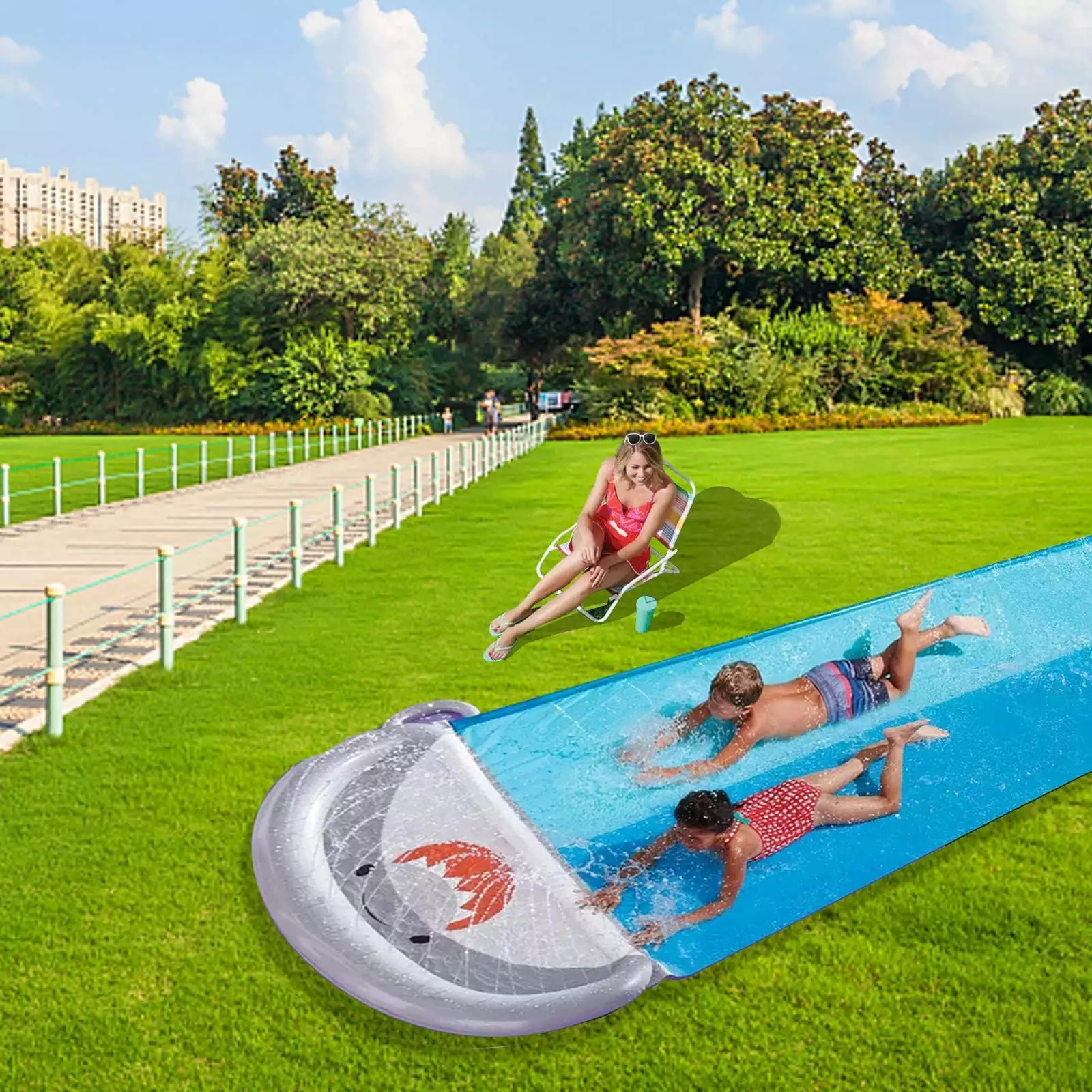 Water Slides with 2 Bodyboards – Lawn Water Slide Summer Toy with Built-in Sprinkler for Backyard Outdoor Fun