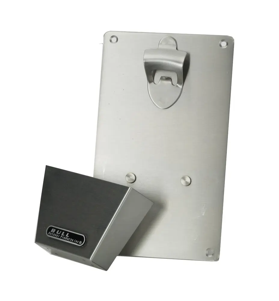 - Bull Stainless Steel Bottle Opener & Catch 16 gauge stainless steel construction