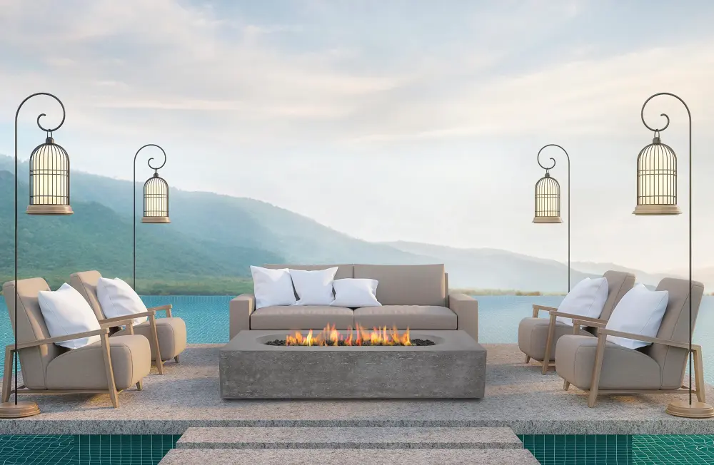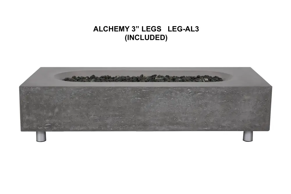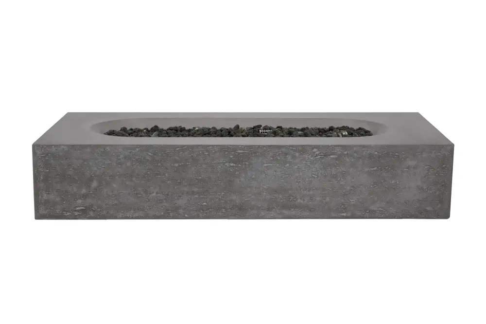 Cozy up around the PyroMania Fire Alchemy Rectangle Concrete Fire Pit Table to enjoy a warm and inviting ambiance with friends and family. Relax in full comfort knowing your stainless steel burner is CSA Certified for safety. This table is perfect for those cool evenings outdoors. Its fashionable design makes this fire pit table a terrific addition to any patio or deck. Bring on the heat and the fun with PyroMania! Relish a heat output of up to 50,000 BTUs during the crisp, cool nights and decorate the trough-styled burn area with the Bali beach lava rock as it hides the burner out of sight. Using the push button spark ignition with the control panel, adjust your desired ambiance by increasing the flame’s height to the high setting or turning it down to the low setting for a more intimate mood.