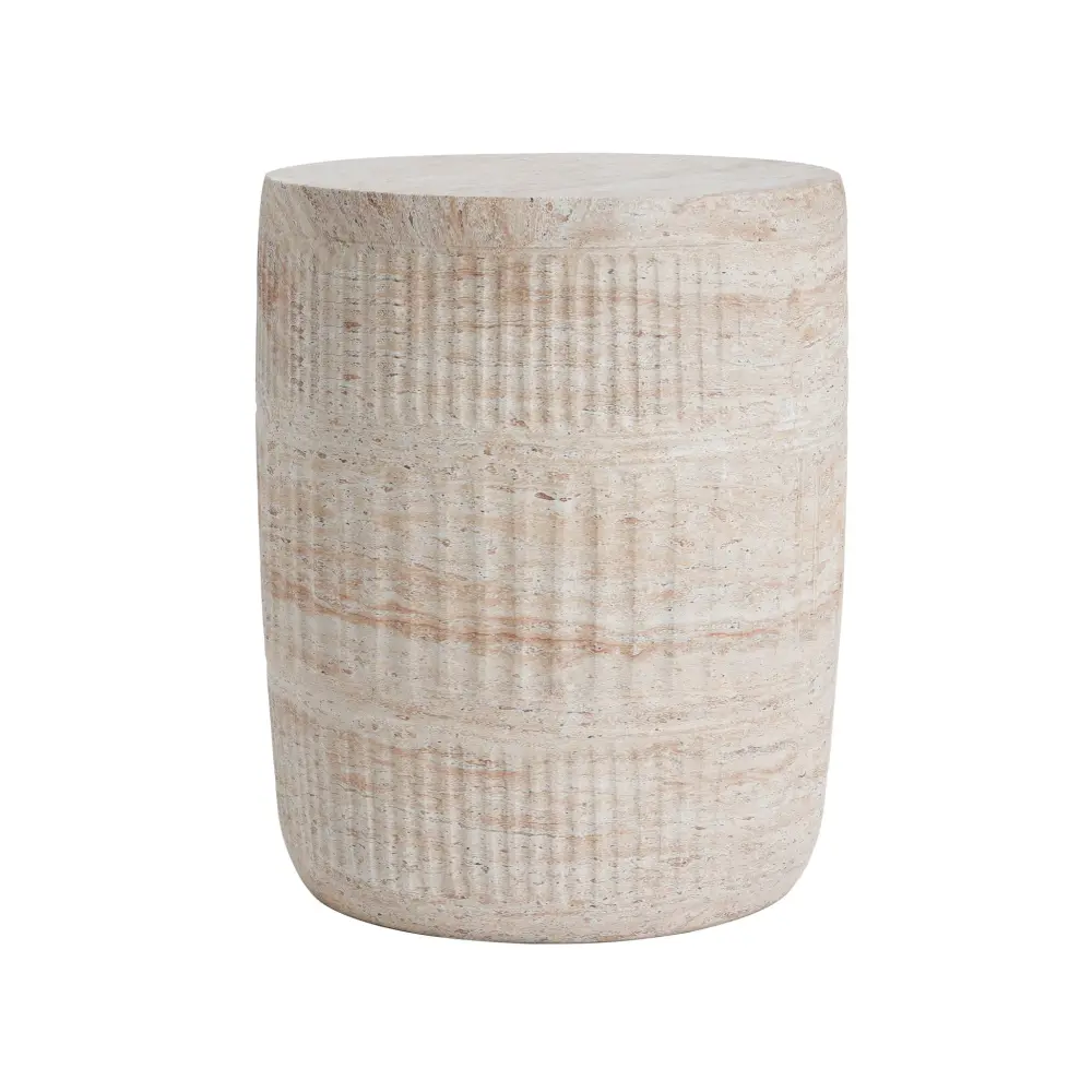 Stylish Outdoor / Indoor Lightweight Concrete Side Table With Travertine – Beige