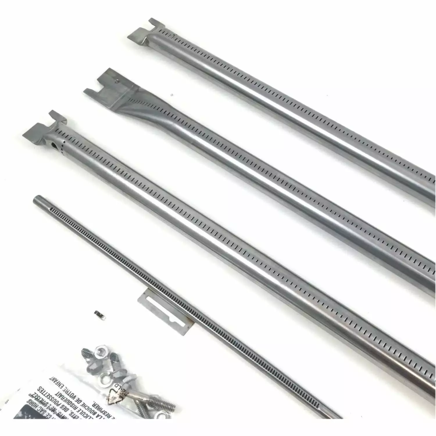 - Includes 3 main burners. crossover burner. hardware. Instructions included.