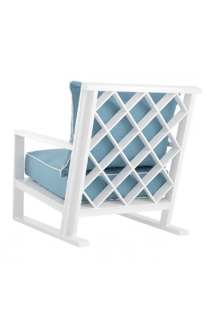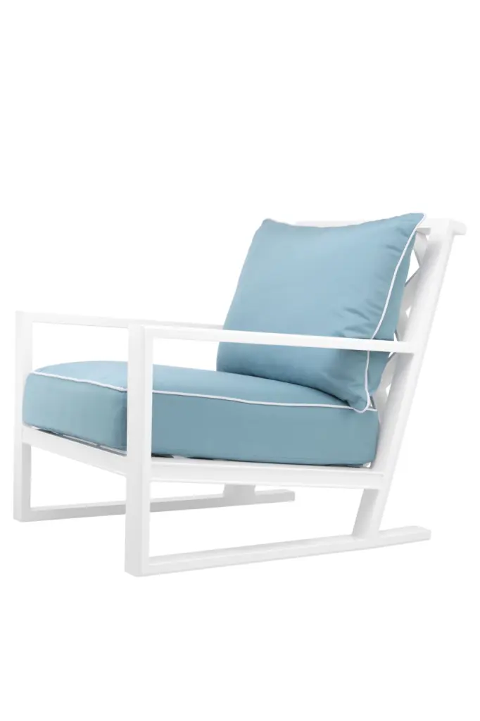 Made from heavy duty materials, the Como Chair is a stylish addition to your conservatory or outdoor living space. With its sophisticated look, white finish frame and plush cushions it offers an ultra-comfortable seating experience. The mineral blue Sunbrella cushion covers are finished with white piping.