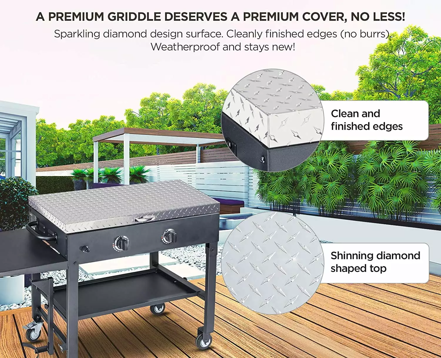 - SPARKLES LIKE A DIAMOND A diamond cut hardcover surface design. Cleanly finished edges (no burrs). Weatherproof and stays new! Our flat top grill cover is also called a Blackstone griddle replacement top. black stone grille cover. 28-inch Blackstone griddle cover 28 inches. Blackstone lid. 28 Blackstone griddle cover. Blackstone covers 28 inches. camp chef cover. camp chef griddle cover. Blackstone hardcover for the 28-inch grill. Blackstone griddle covers. Blackstone 28 inch griddle accessories!