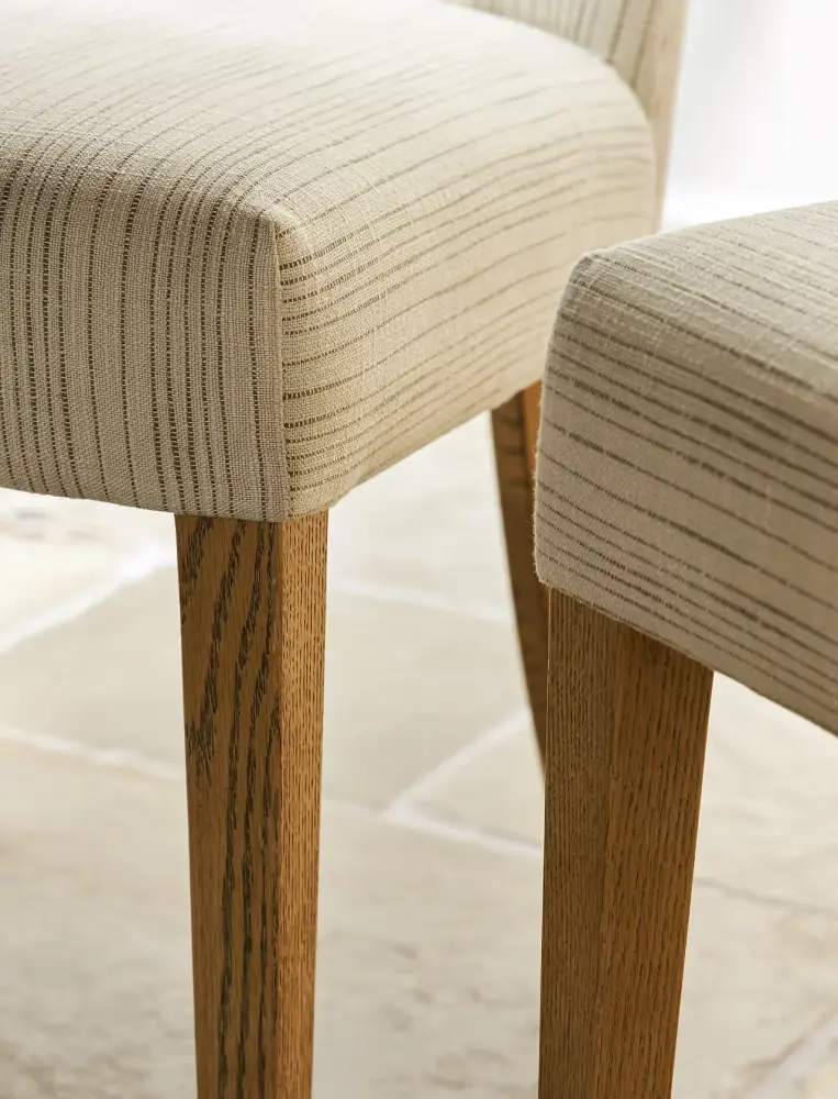 Wraysbury Dining Chair is a true classic. Its textured fabric boasts a stylish pale khaki stripe that will complement a range of colour palettes, while the seat pad is a comfy place to sit for long lunches and dinner parties alike.