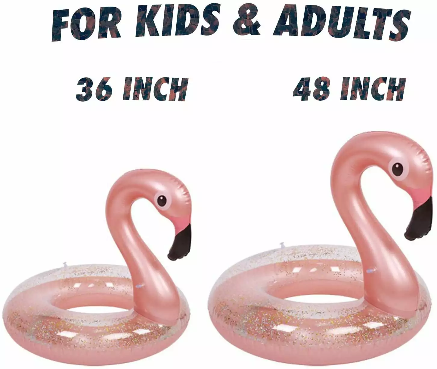 - VIVID COLORS ARE FUN: This pool inflatable is bright. vivid. and attractive. Cute flamingo shape. sequins in the tube. large buoyancy. crystal clear. enjoy the cool water time. High-quality production technology ensures that the color on it does not fall off. It is divided into 2 air chambers. This is specially designed so that it can float smoothly on water surface and allows you to inflate the inflatable pool floats more quickly and easily.