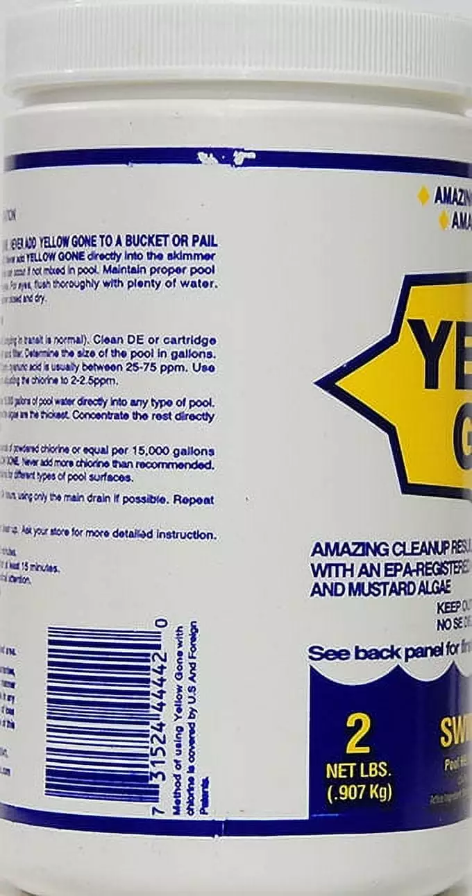 Yellow Gone Fast Acting Pool Cleaners is specially formulated to fight mustard and green algae. Yellow pool algae can be very difficult to treat and get rid of. Most pool owners struggle to destroy it. as chlorine alone doesn’t cut it. That’s where Yellow Gone comes in. This mustard pool algae killer cleans up the problem in no time so you and your loved ones can start enjoying your swimming pool again. Since it dissolves quickly and doesn’t require any brushing. it’s easy to apply. Even though green algae is typically easier to get rid of than mustard. it can still cause a lot of heartache to pool owners. Yellow Gone algaecide gets rid of green pool algae as well. The best part is Yellow Gone is safe for all pool surface types. Vinyl. concrete. gunite. fiberglass. it doesn’t matter. You won’t stain your swimming pool with this product. so feel free to use as directed on the label. This yellow pool algae algaecide works in both salt and traditional chlorine pools.