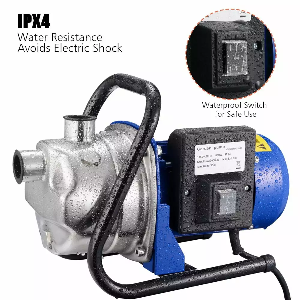 660GPH 600W Electric Water Booster Pump. with durable stainless-steel pump head and lightweight design with handle. is perfect for pumping water in garden. pool. lawn. etc.